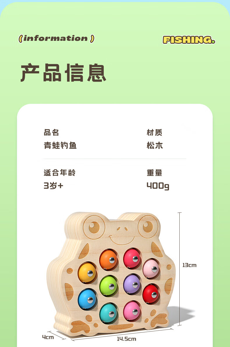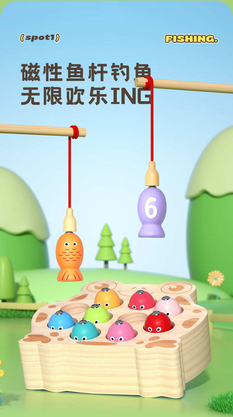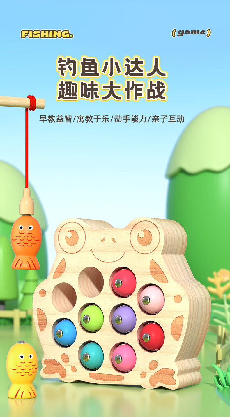 Taoli Nianhua magnetic fishing toy gift for children 1 to 3 years old, 2 and a half years old, 6-power children, toddlers, boys and girls, frog fishing