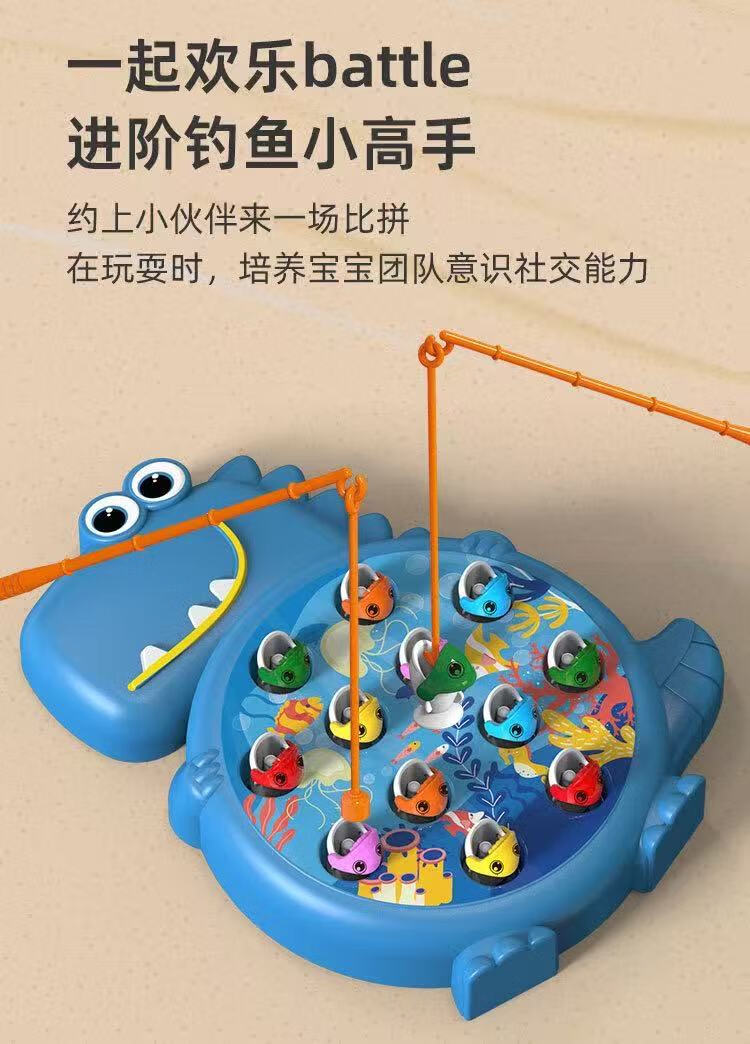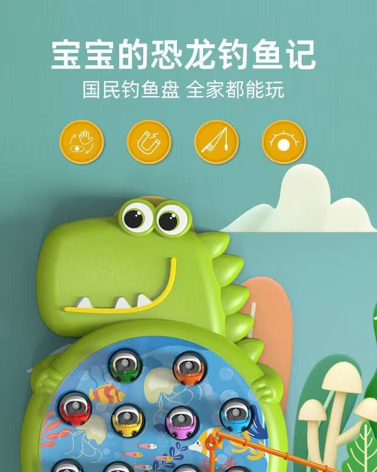 Children's Fishing Plate Toy Infant and Toddler Fishing Toy Magnetic Puzzle Early Education Kindergarten Fishing Plate Dinosaur Green Blue Randomly