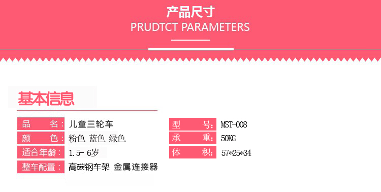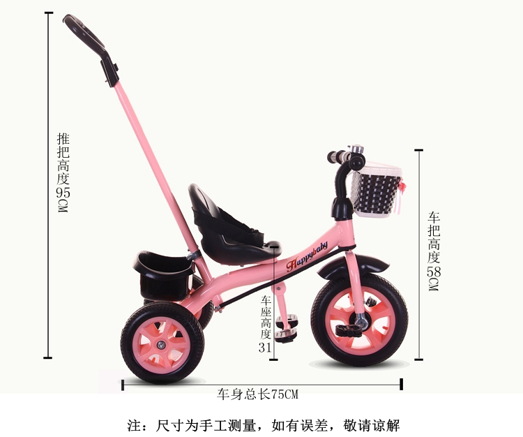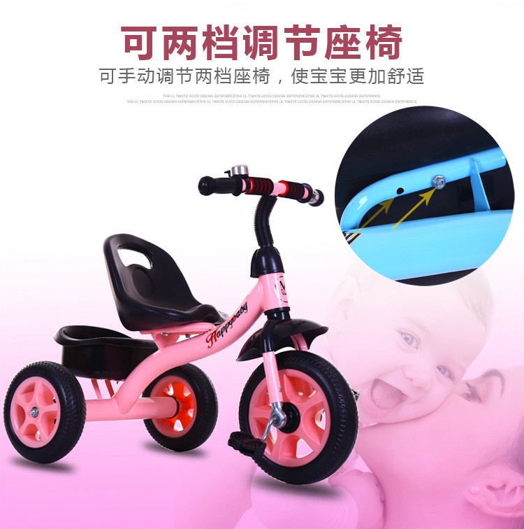 Misate children's tricycle bicycle 1-3-5-2-6 years old baby large toy push bicycle stroller upgraded foam wheel pink