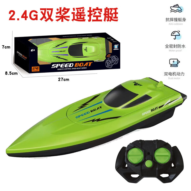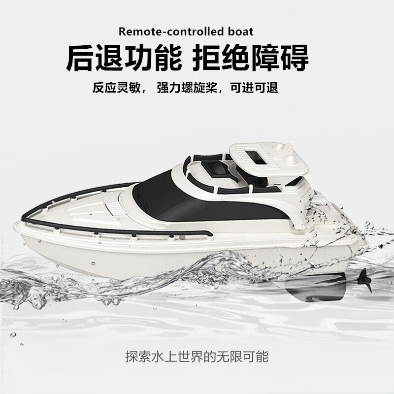 Oqirui remote control boat toy can be launched into the water to simulate high-speed speedboats, electric ships, children and boys, water boat model pull-net, basic large 26CM remote control boat, white, standard version + remote control battery + screwdriver