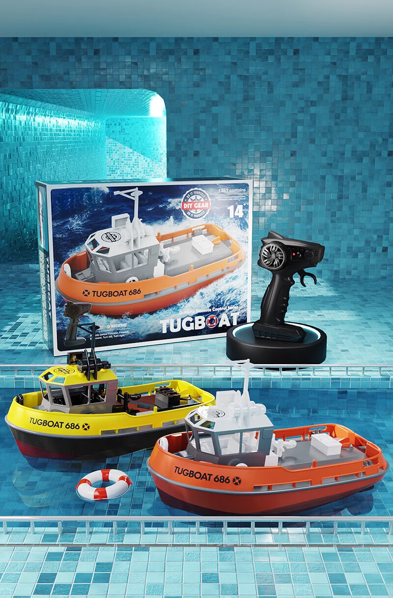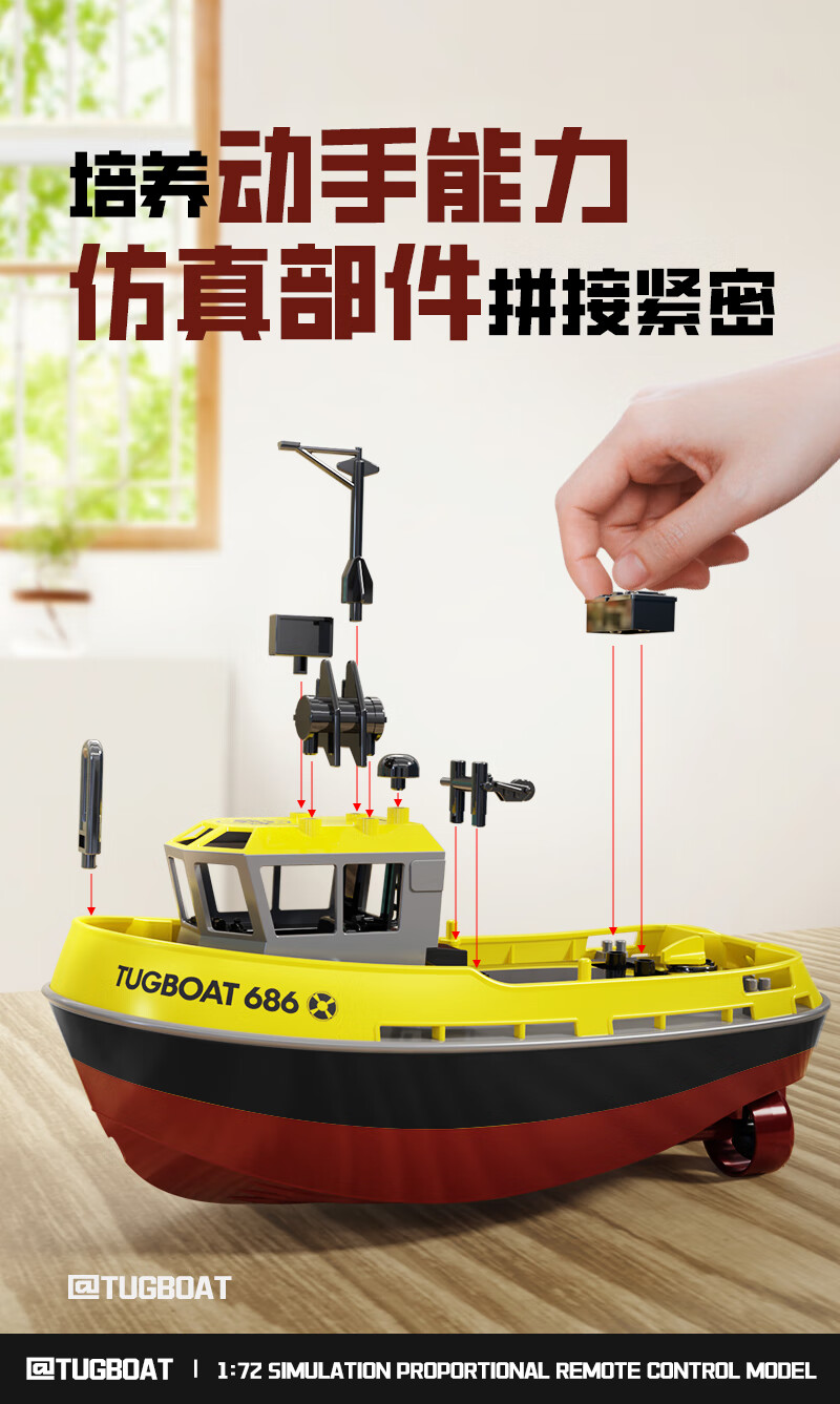 Bonas children's mini remote control tug boat boy turbojet high-speed speedboat rc remote control boat toy can be launched into the water model boat sculls tug boat dark green standard one piece 600 mAh official standard