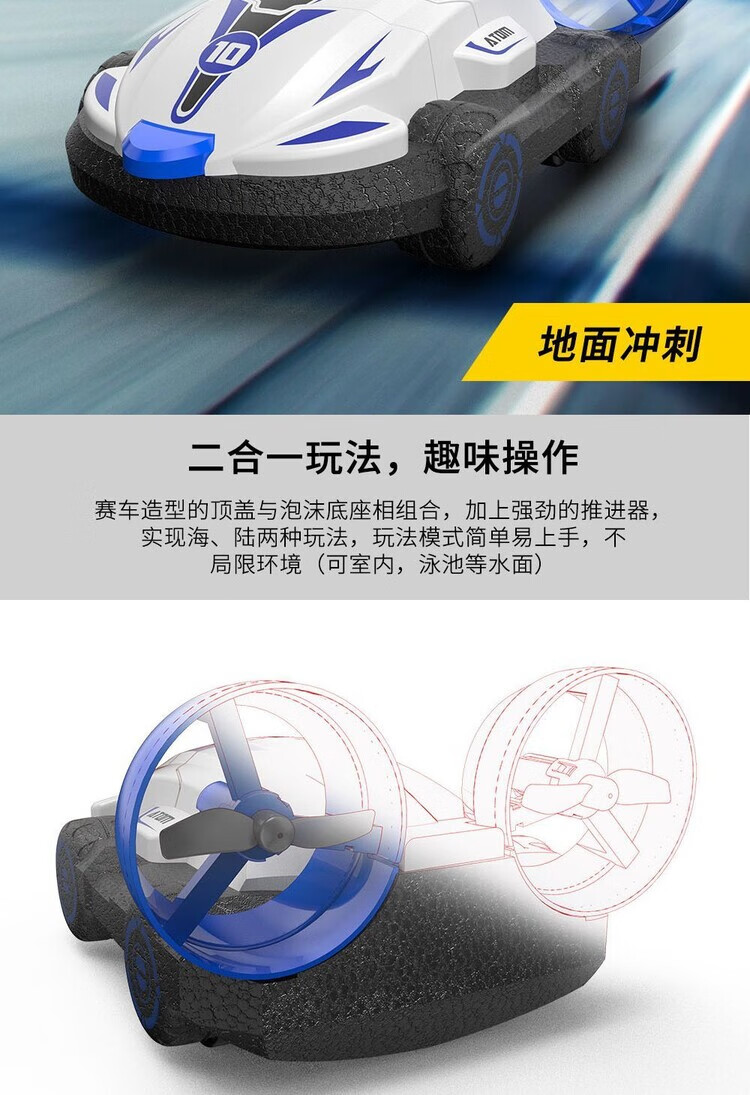 Rhenium amphibious remote control car dual-purpose mini children's stunt boy electric car toy remote control boat high-speed speedboat silver white standard single battery (1 rechargeable battery)