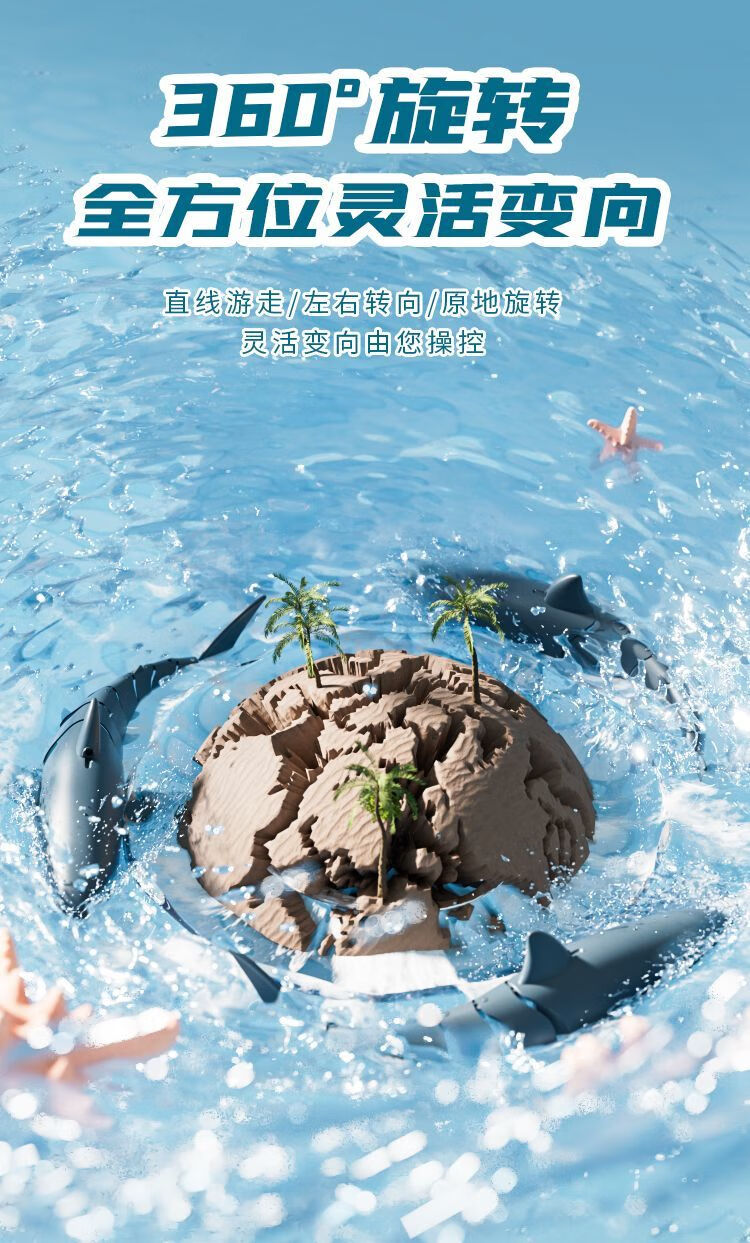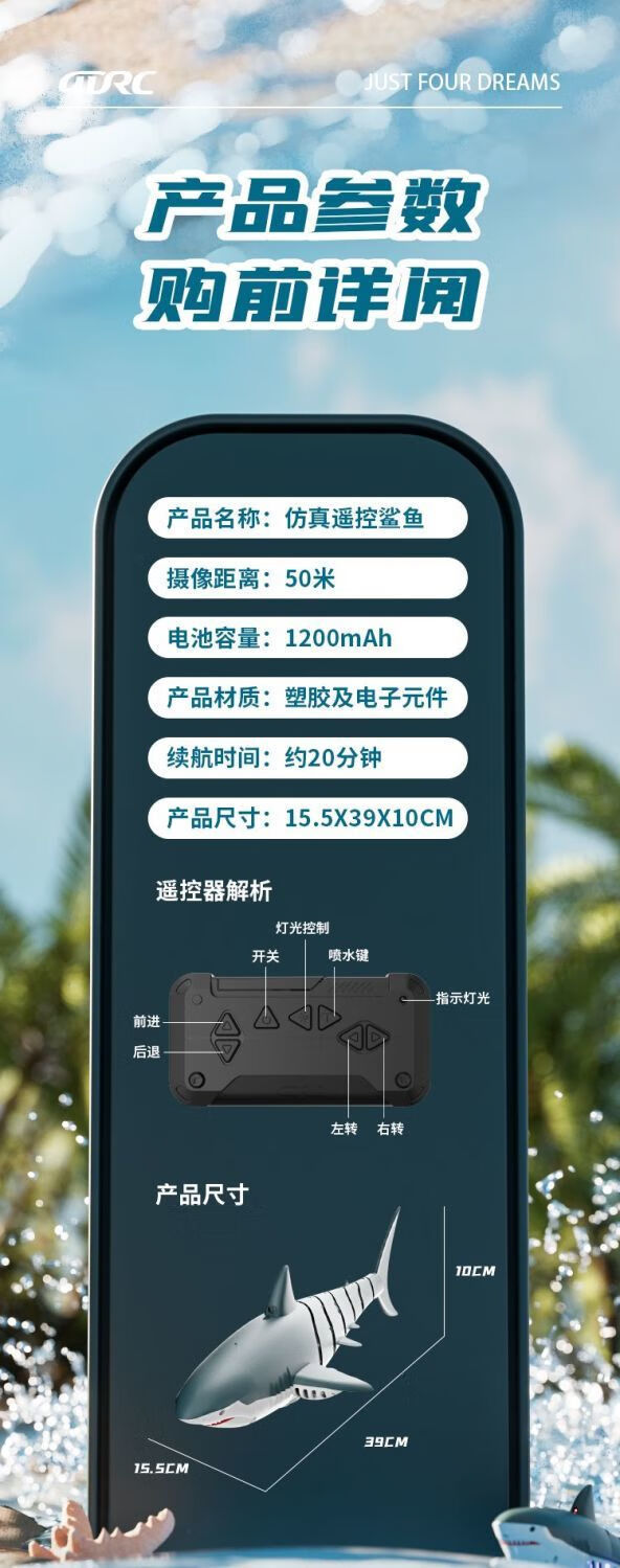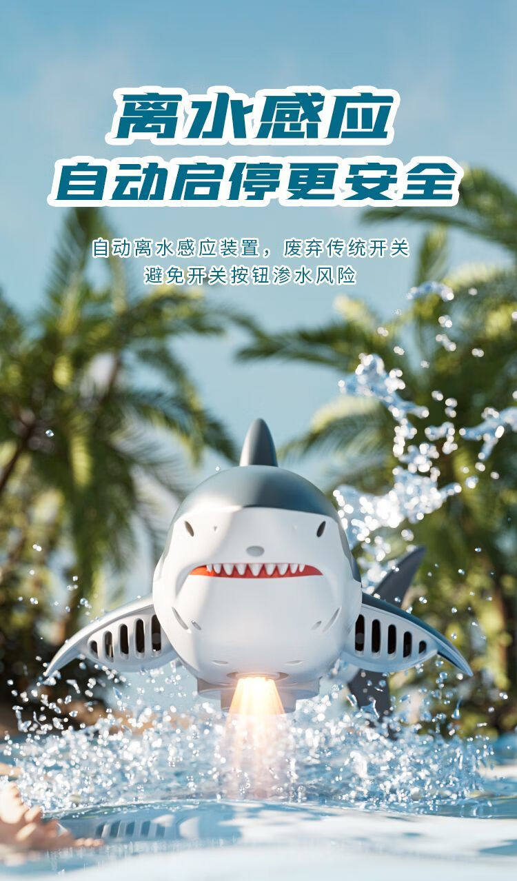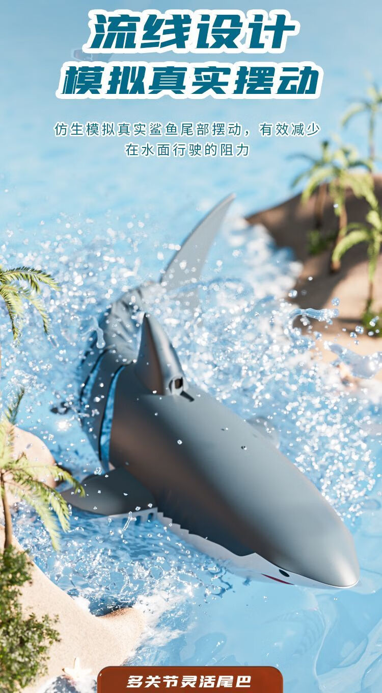 MPPMCK simulated remote control shark rechargeable megalodon model remote control boat for children and boys that can move into the water and swing. Fully waterproof and cameraless version of the bionic cruise with lighting/water spray. The standard single-electric version includes a set of batteries/charging cables.