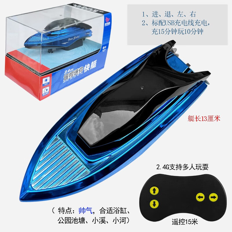 Xiannian mini remote control destroyer battleship aircraft carrier frigate military model water boat children's toy electric speedboat sky blue small yacht - 2.4G charging head + charging cable - free remote control battery + tools