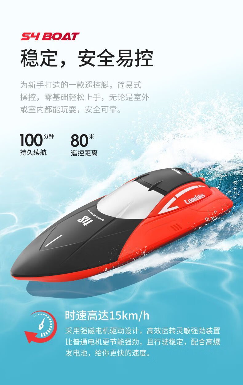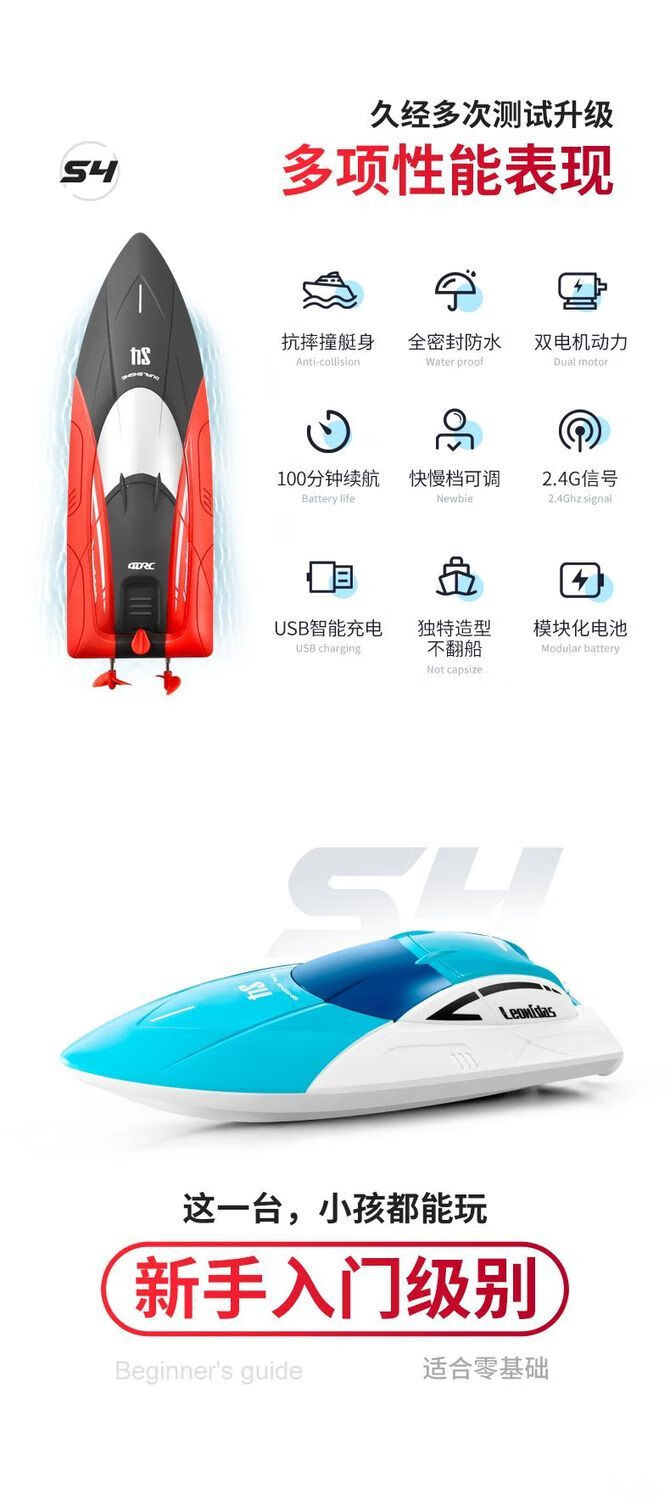 Jingsen High Speed Remote Control Speed Boat Extra Large Remote Control Boat Children's Charging Boat Wireless Electric Boy Water Toy Boat Model Red 50 Minutes Battery Life + Automatic Reset + Gear Adjustment Value Four Rechargeable Batteries Double the Battery Life