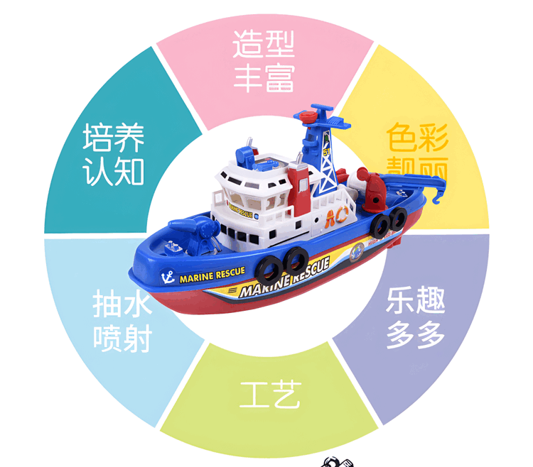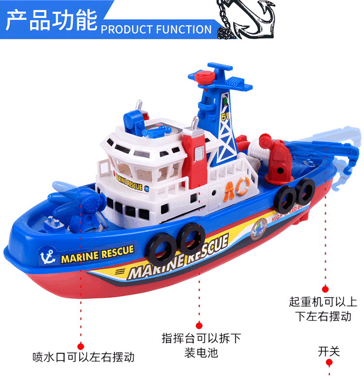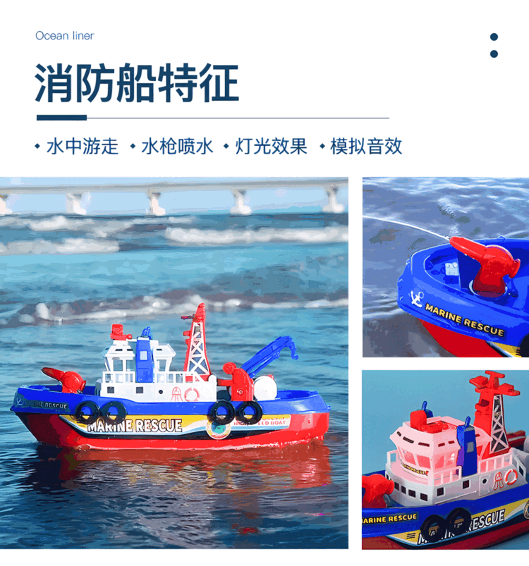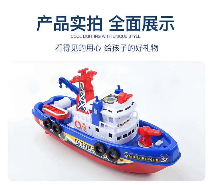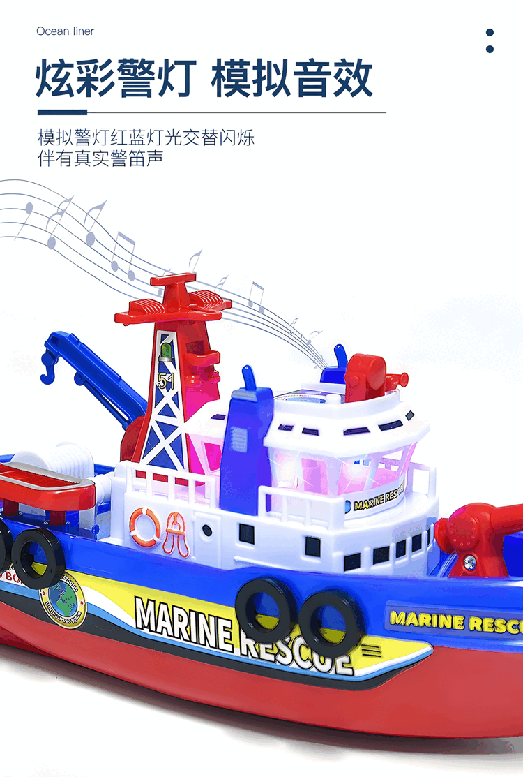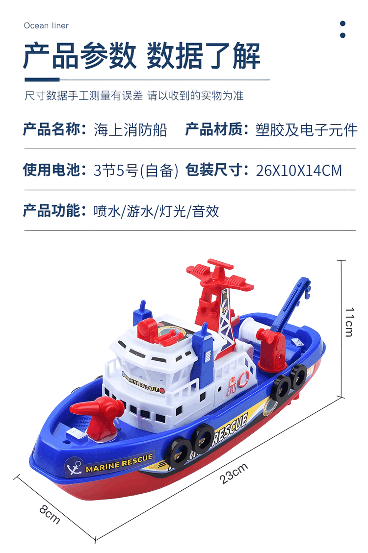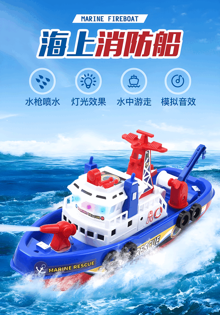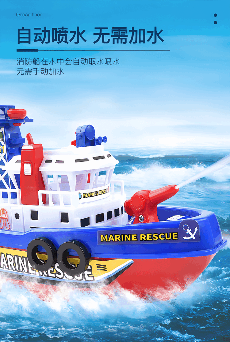 Remote control ship toy can be launched into the water children's model electric boat marine fire ship pirate ship boy baby bath ordinary e-commerce packaging box (comes with rechargeable battery + charger set)