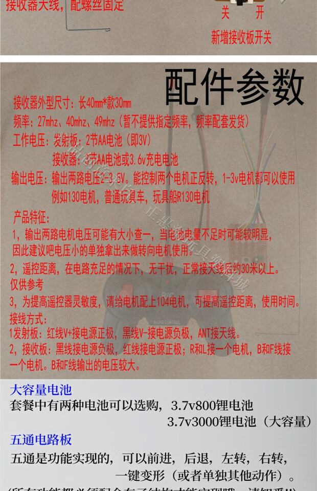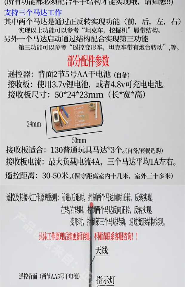 Mimingle four-way remote control 30-meter remote control device Remote control car and boat toy accessories Launching board receiving board antenna 1Q control + 1 receiving board new receiving switch