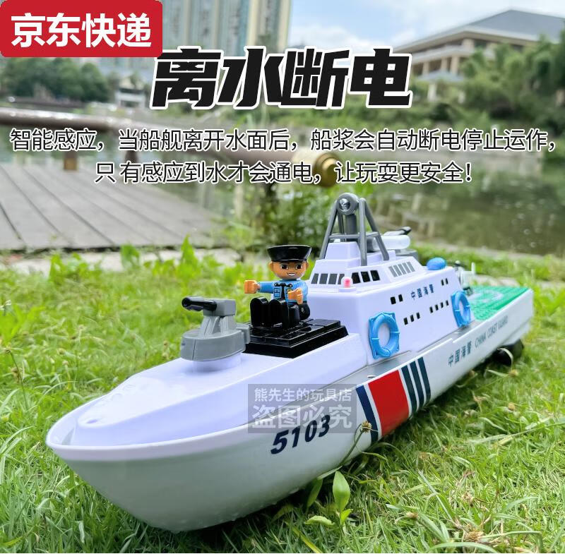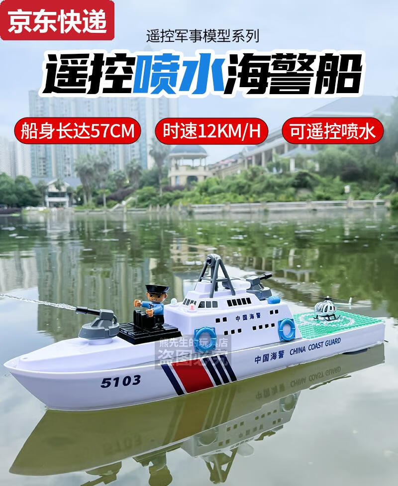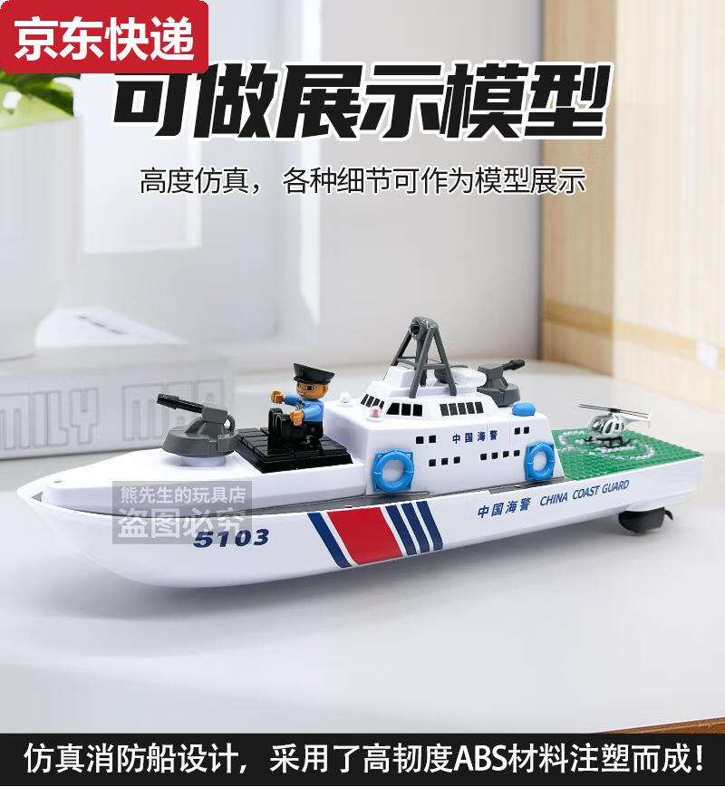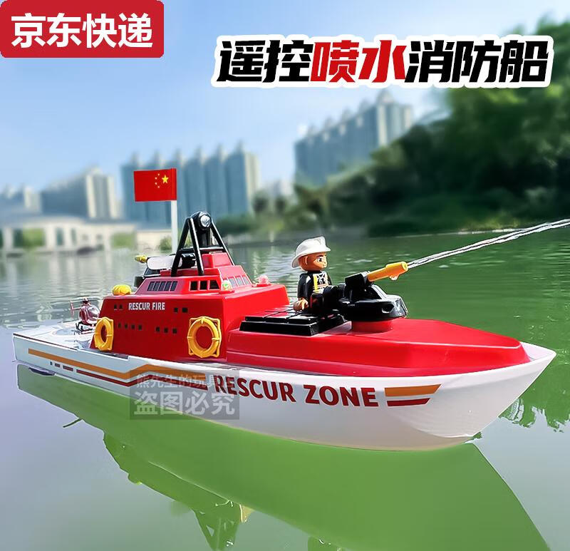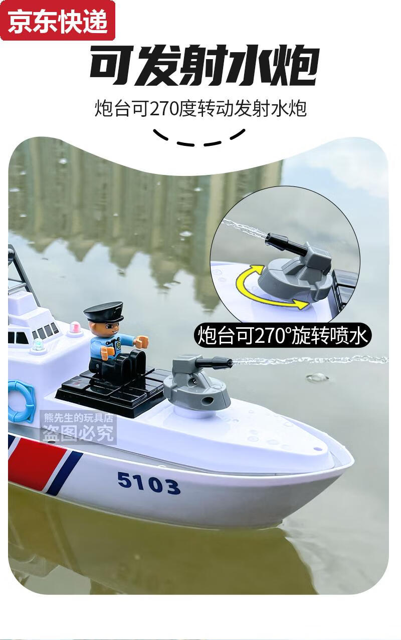 Qilicai super large remote-controlled water-jet navy ship children's ship model toy gift boy amusement water speedboat electric boat red fire boat two batteries one charge replacement battery life 60 minutes