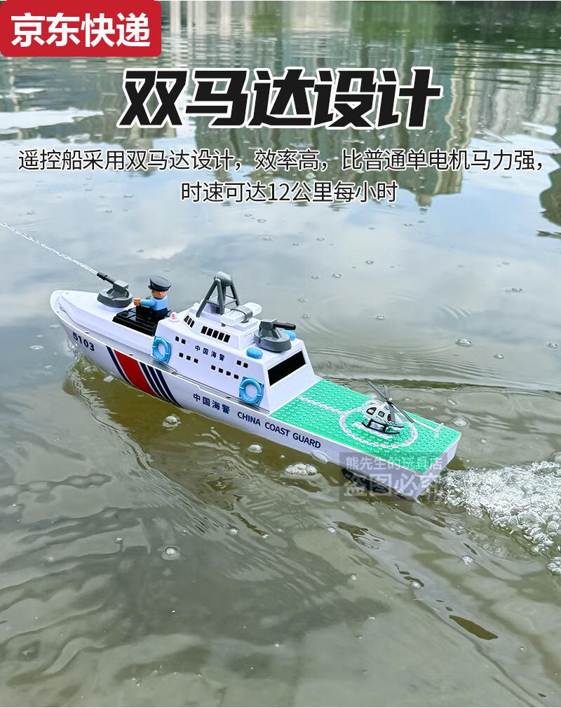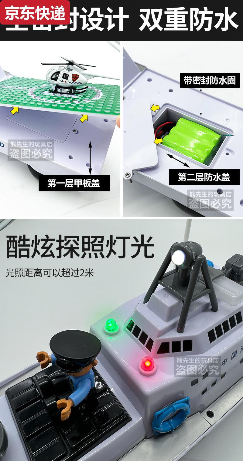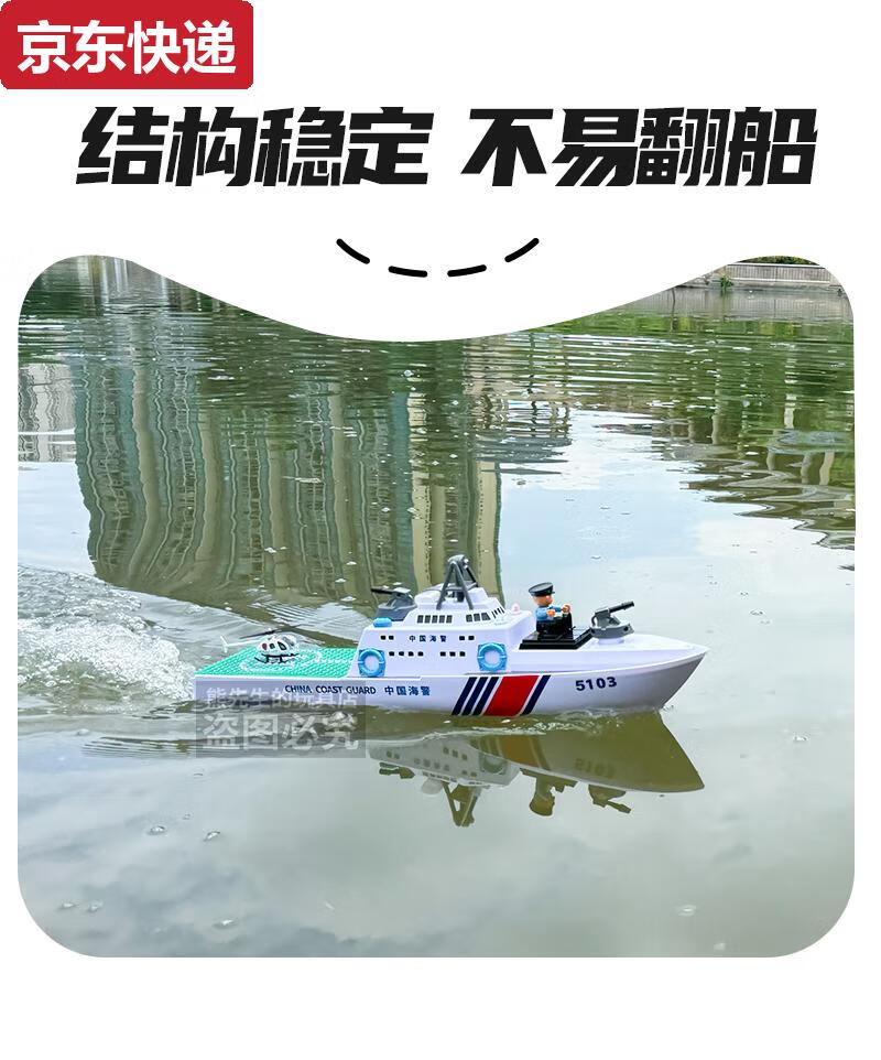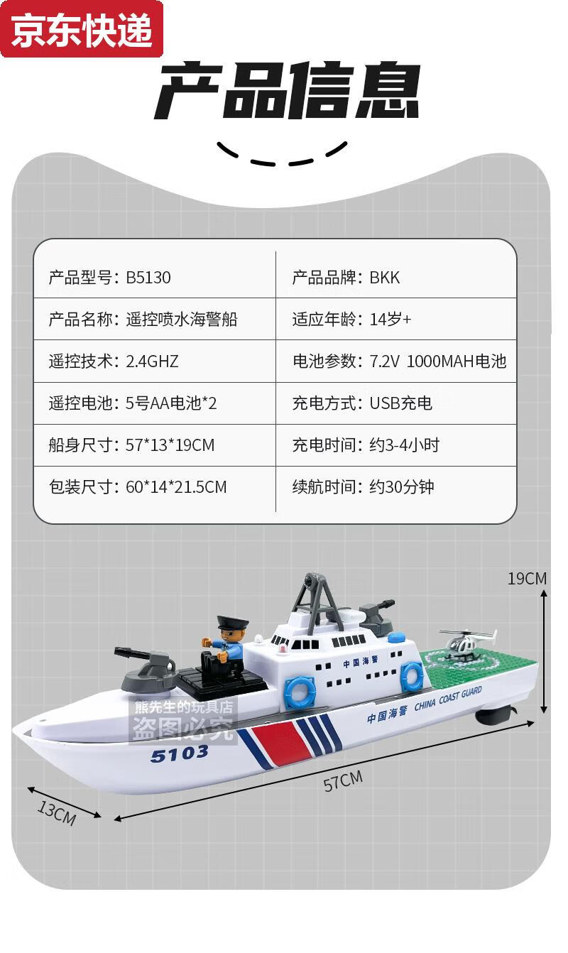 Qilicai super large remote-controlled water-jet navy ship children's ship model toy gift boy amusement water speedboat electric boat red fire boat two batteries one charge replacement battery life 60 minutes
