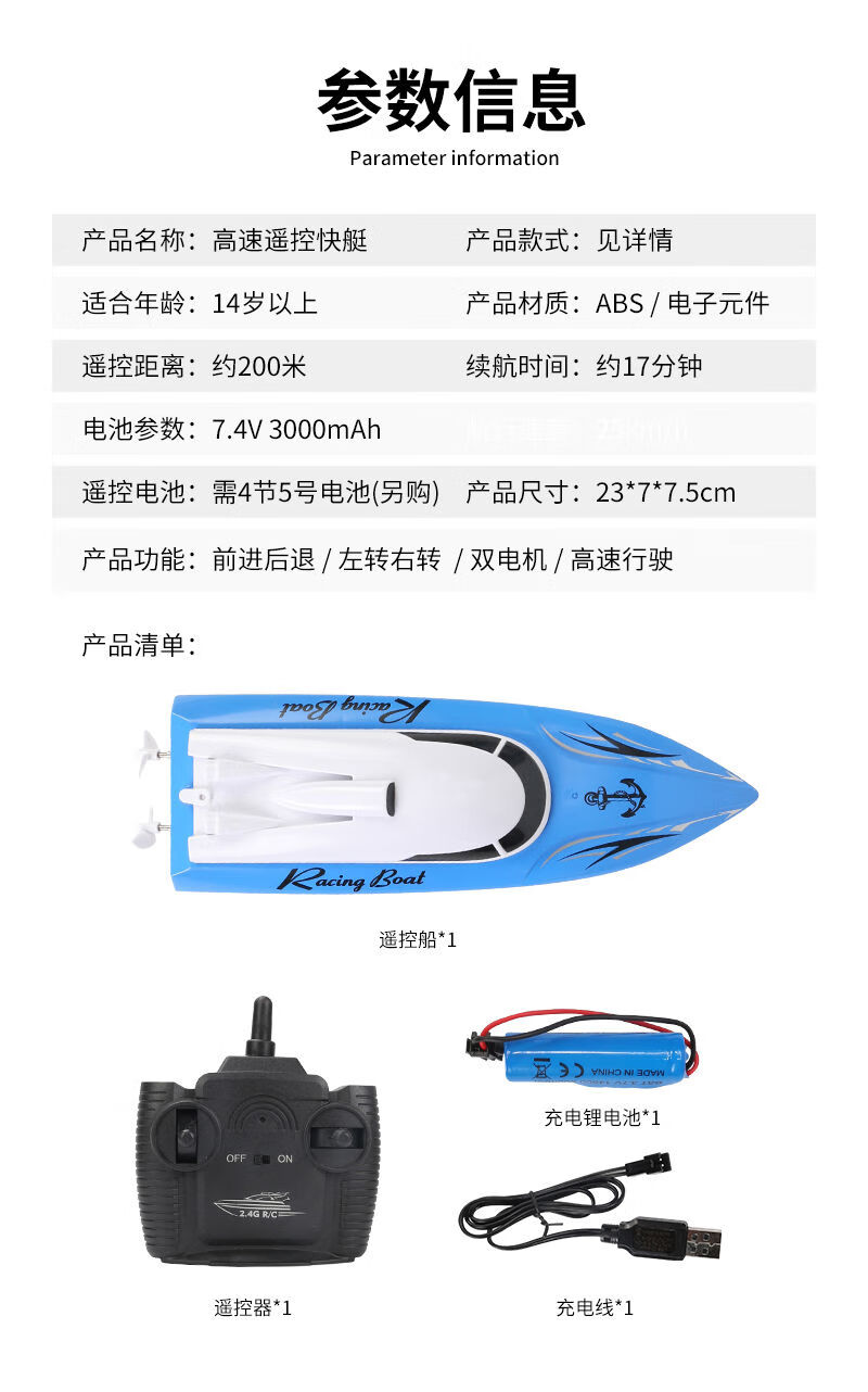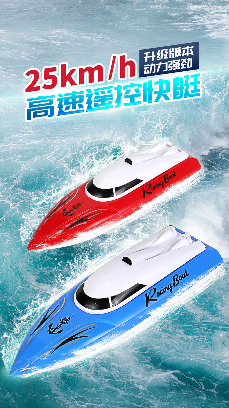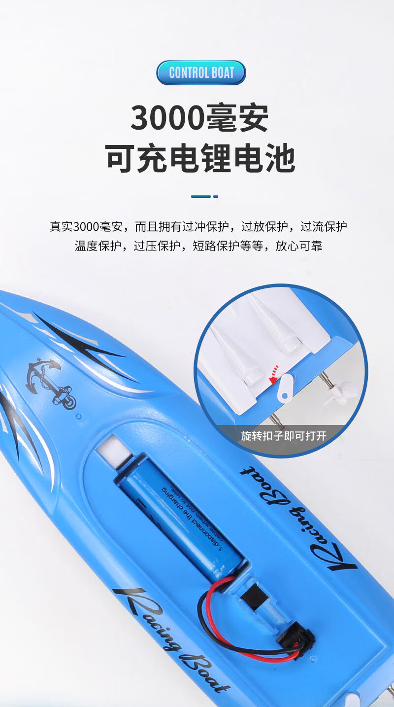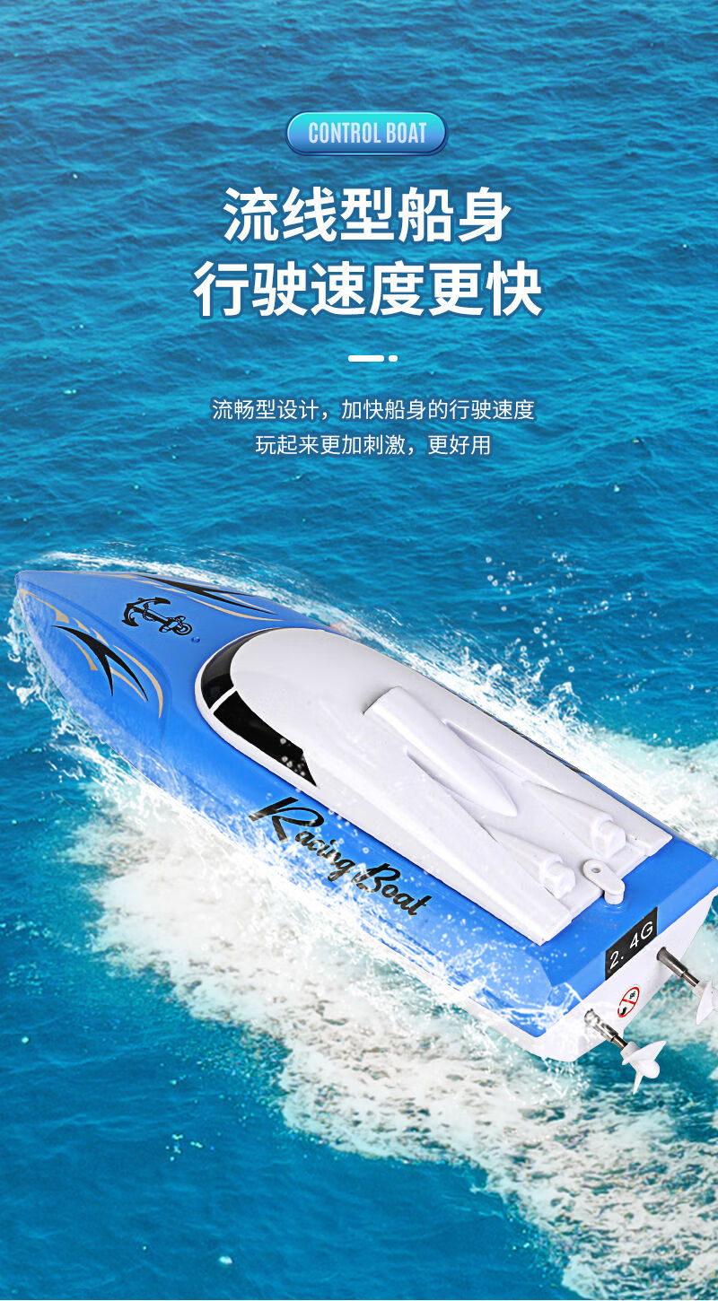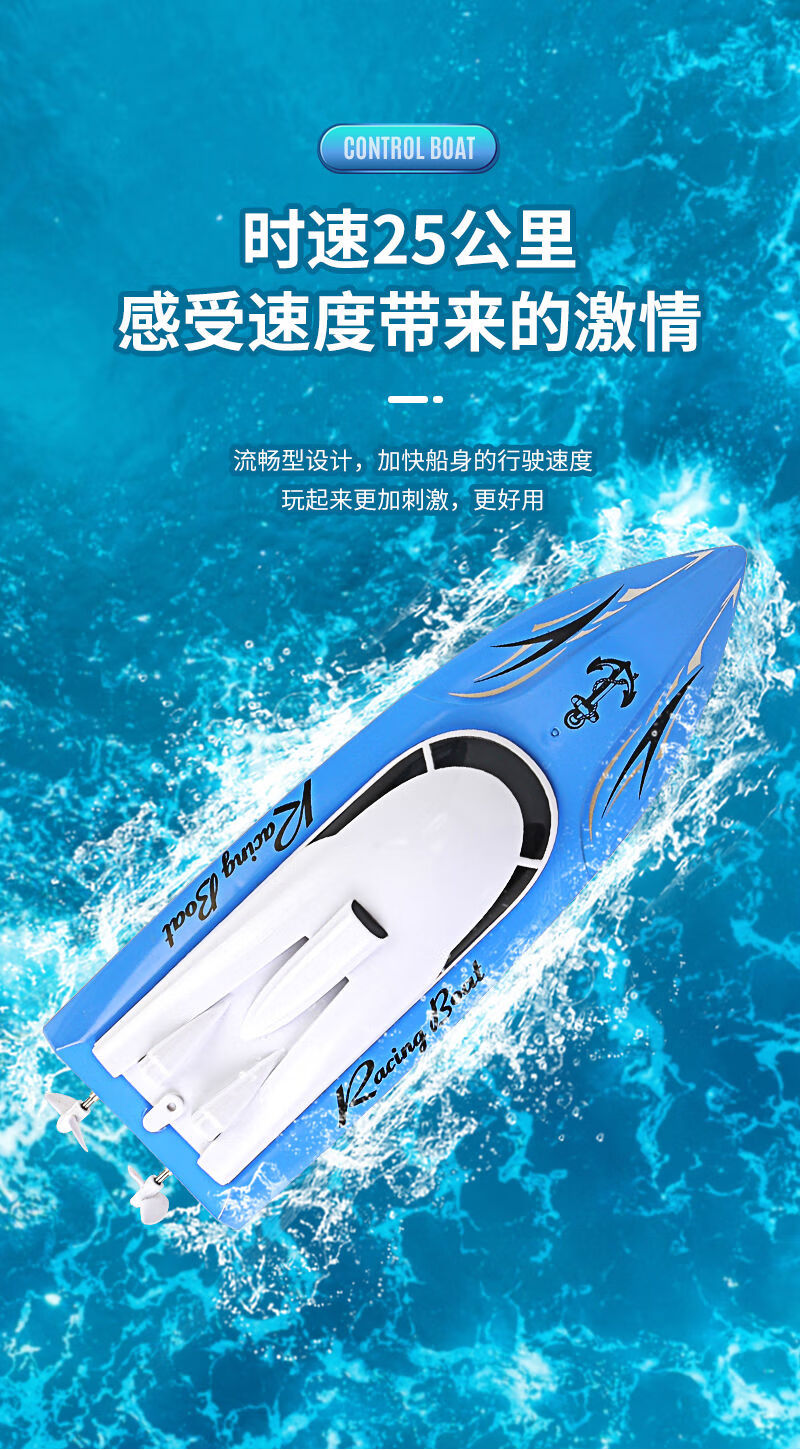 Shantou Lincun super large rechargeable remote control speed boat remote control speed boat ship 2.4G wireless ultra-long distance children's toy boat model blue 5 cm ordinary model two rechargeable batteries come with remote control battery screws