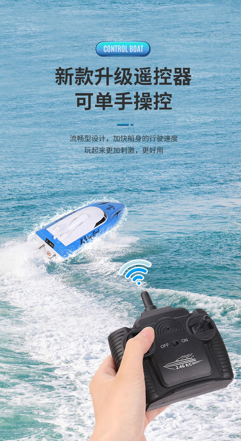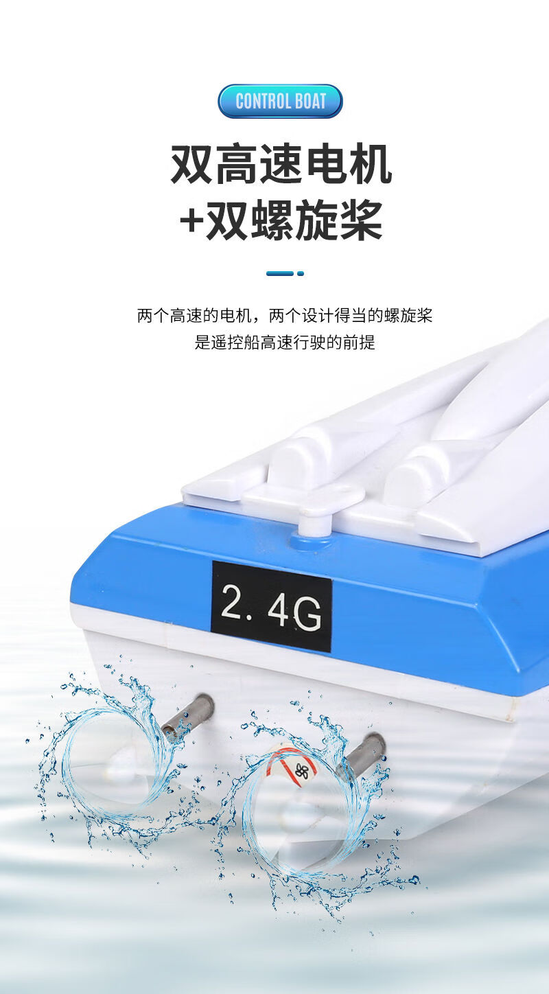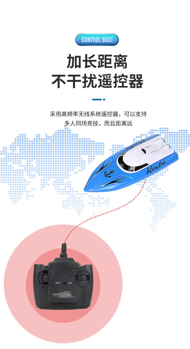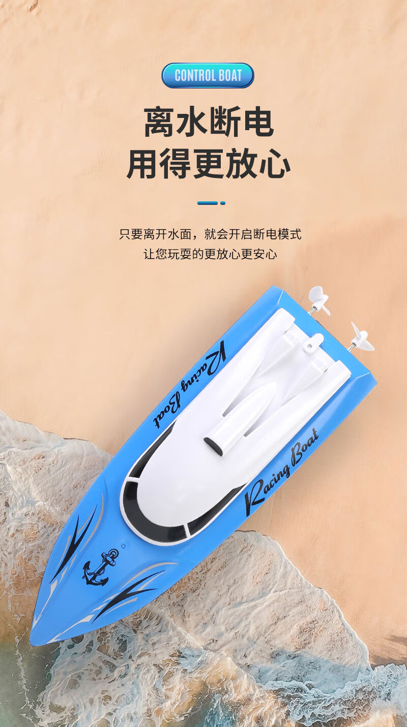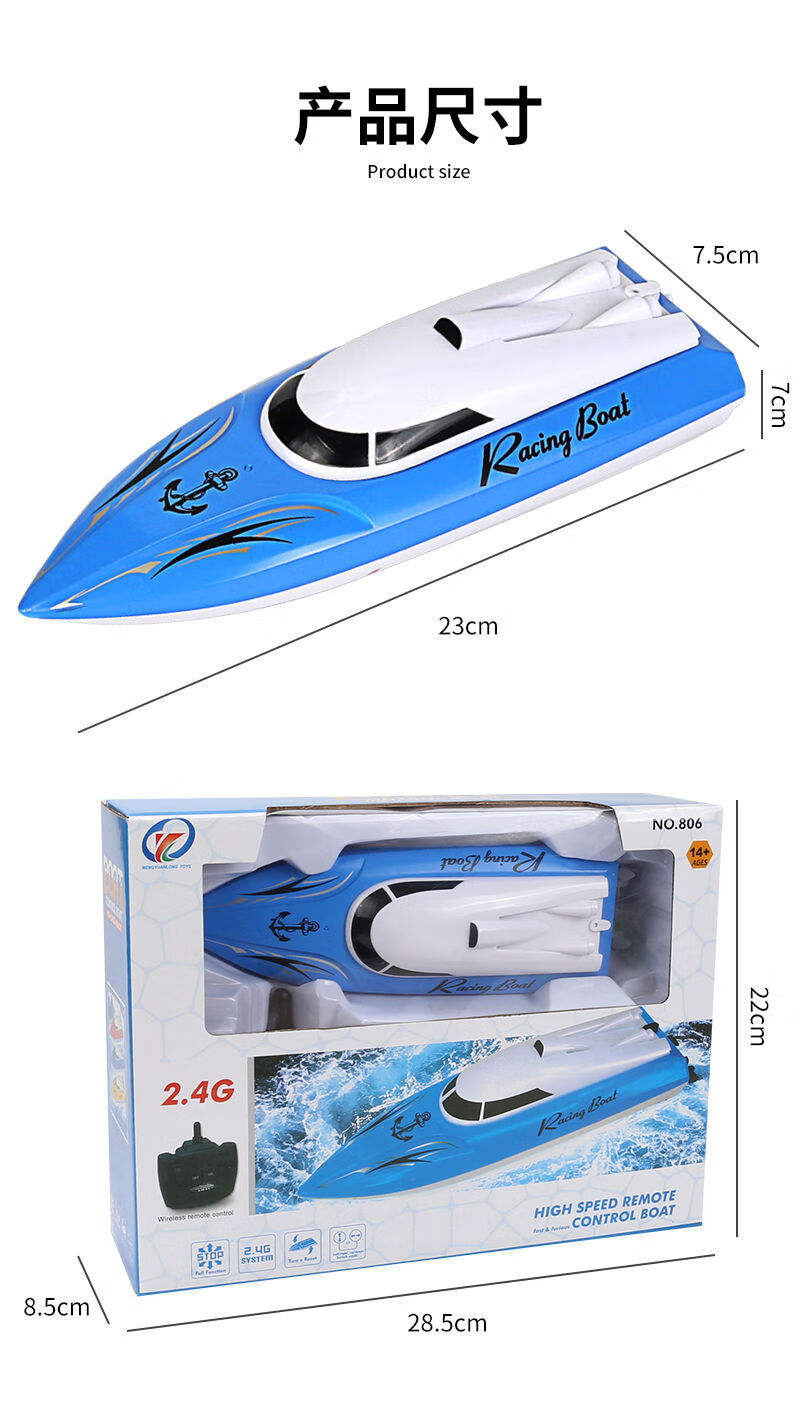 Shantou Lincun super large rechargeable remote control speed boat remote control speed boat ship 2.4G wireless ultra-long distance children's toy boat model blue 5 cm ordinary model two rechargeable batteries come with remote control battery screws