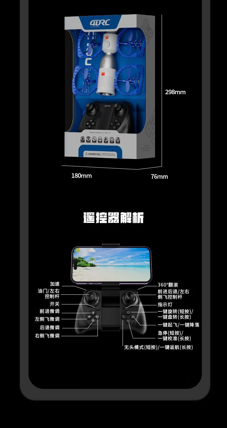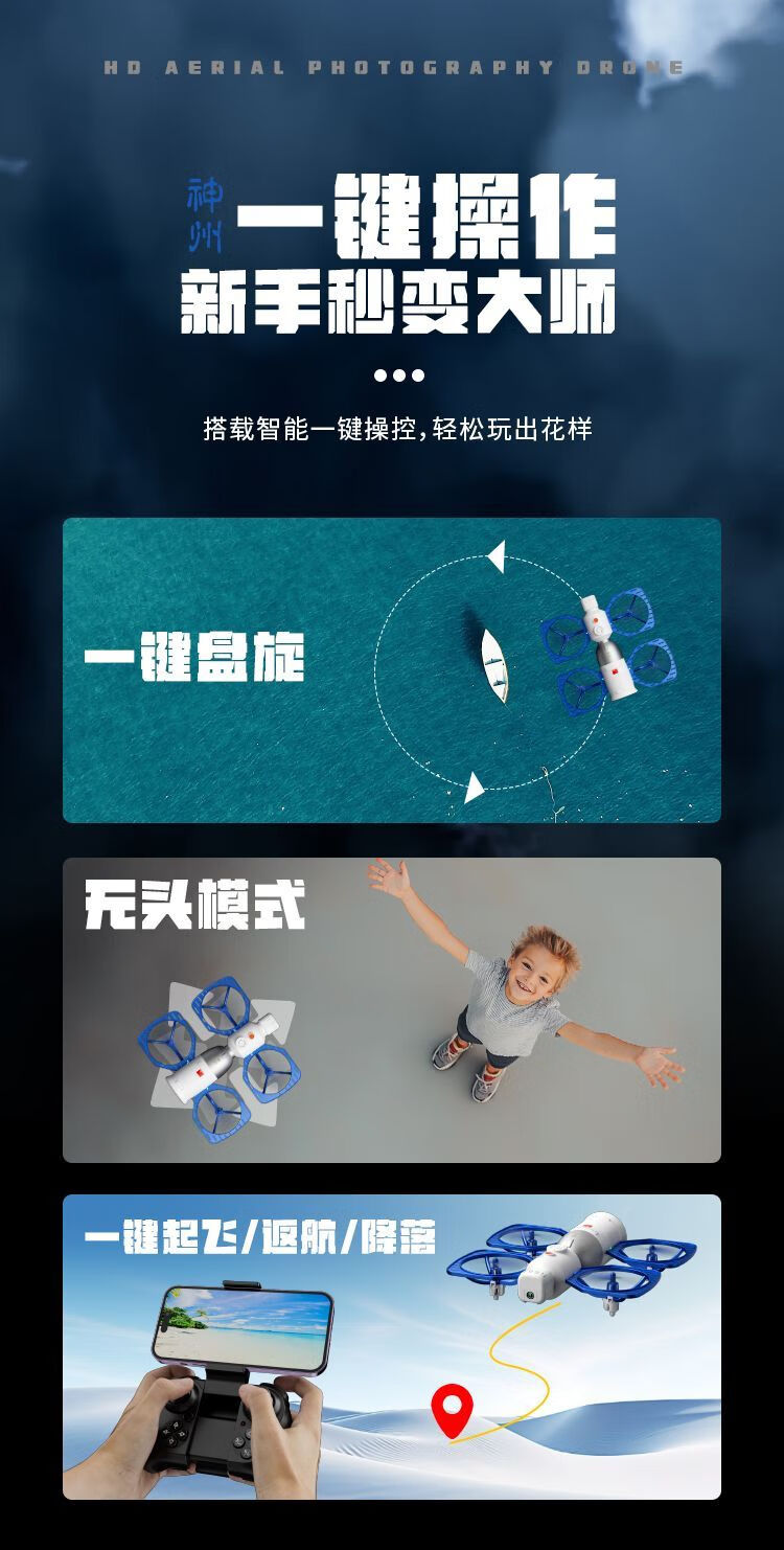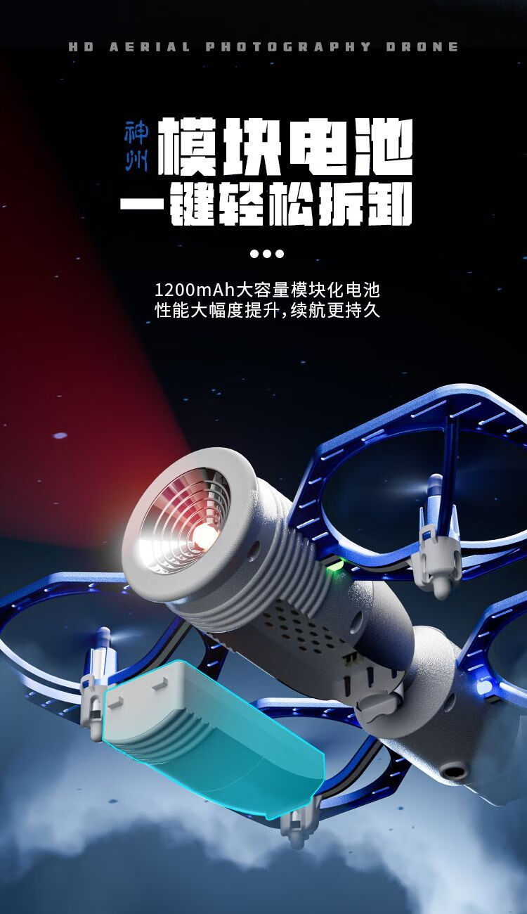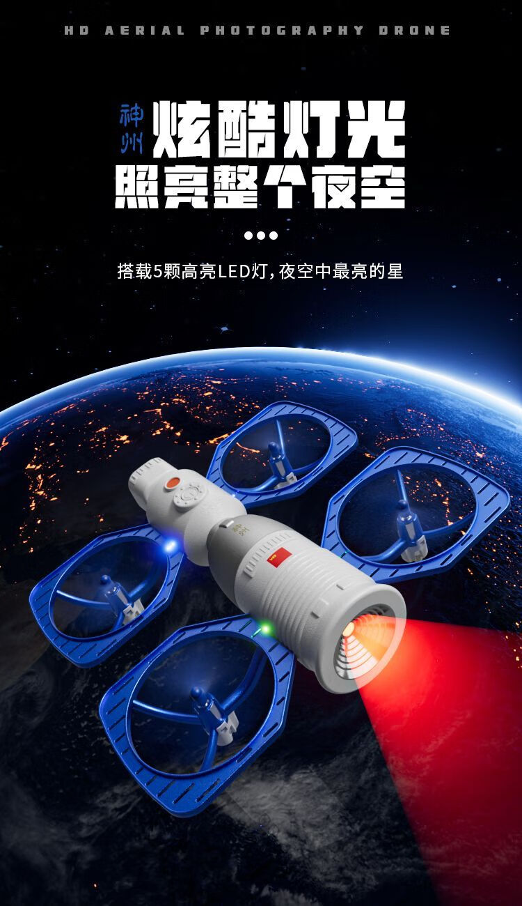 XJCQ Shenzhou spaceship remote control aircraft helicopter children's fall-resistant rechargeable primary school aviation model unmanned boy intelligent height setting + one-button take-off 3 aircraft batteries + luxury accessory package
