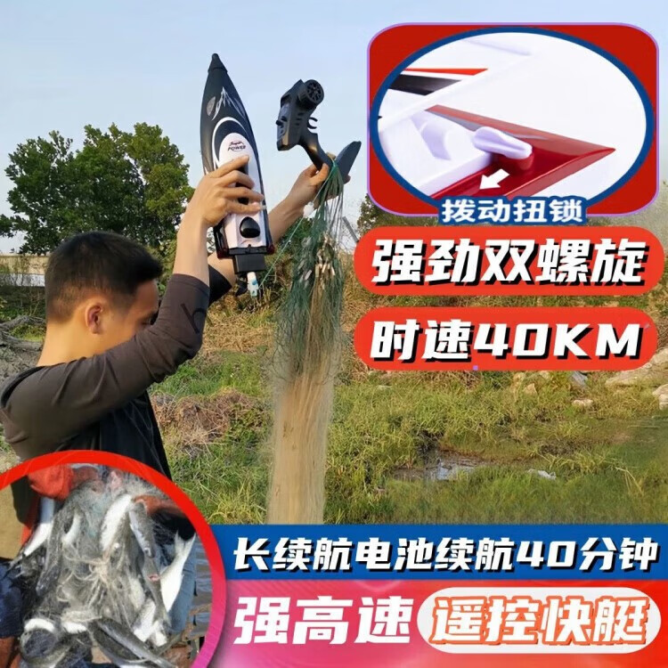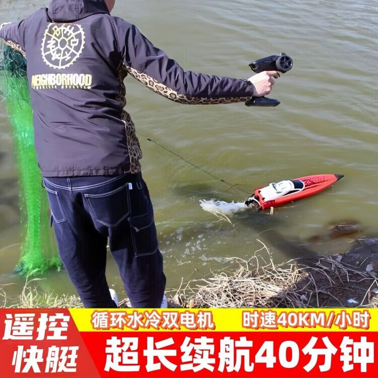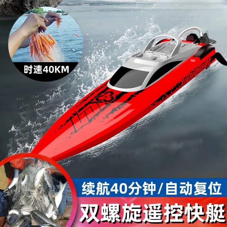 Remote control pull net automatic high power nest making boat horsepower fishing high speed speedboat net fishing artifact dual motor speed 40KM + long battery life red rechargeable battery - battery life 40 minutes + delivery
