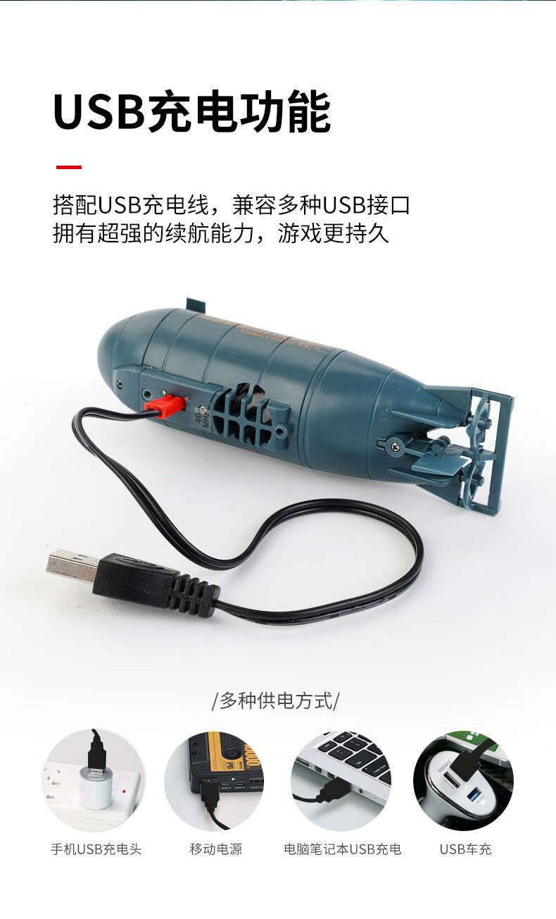 Shantou Lincun small remote control nuclear submarine submarine rechargeable hovercraft toy boat speedboat mini waterproof fish tank battery submarine blue 40hz standard - free battery screwdriver