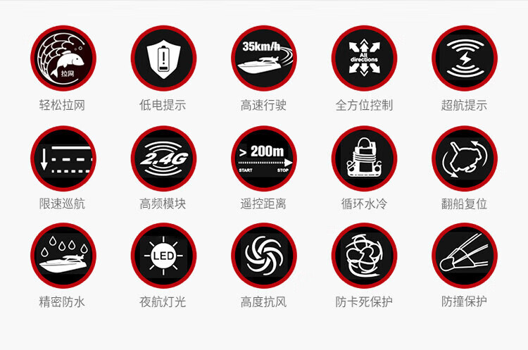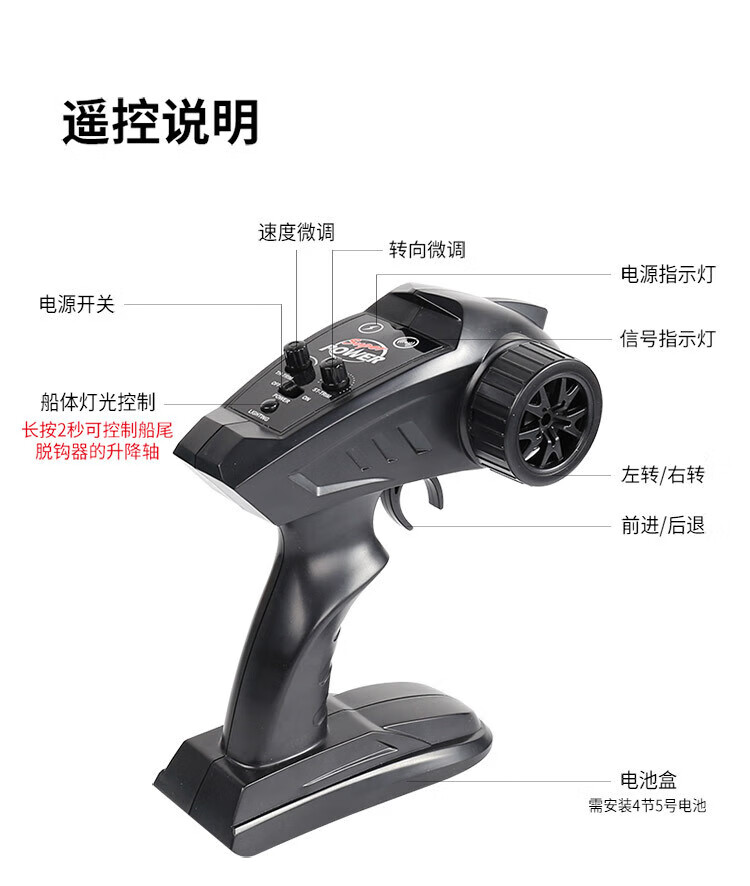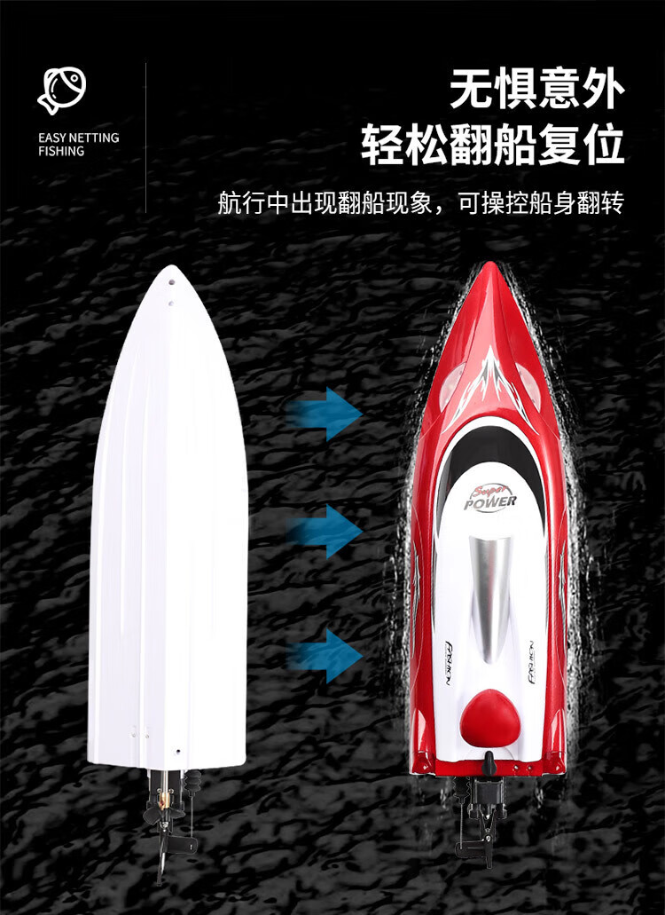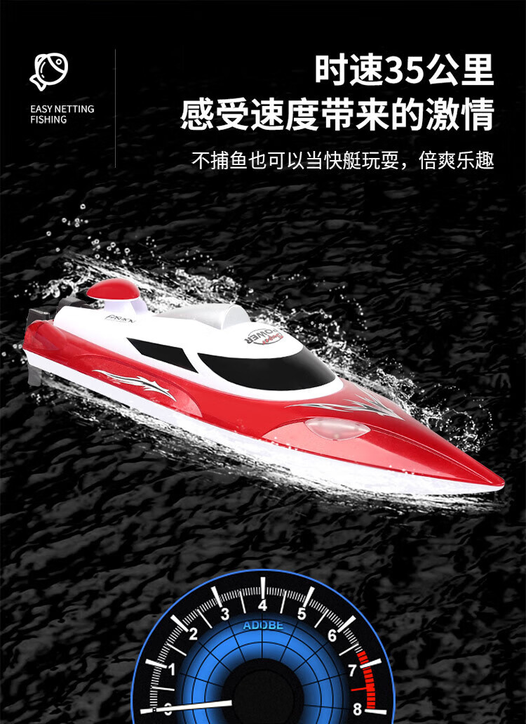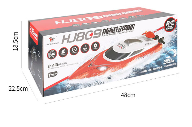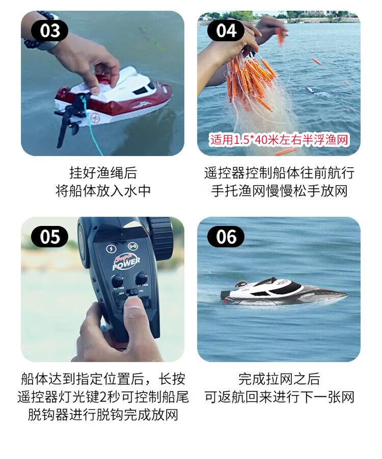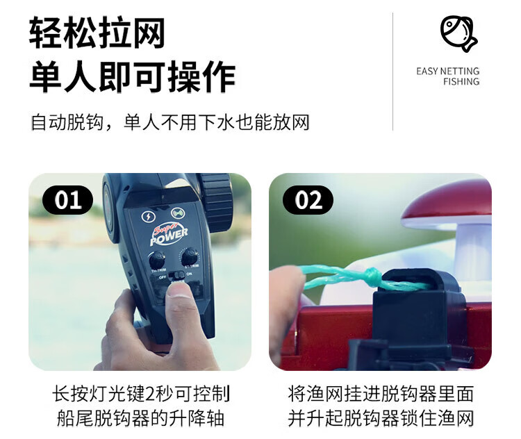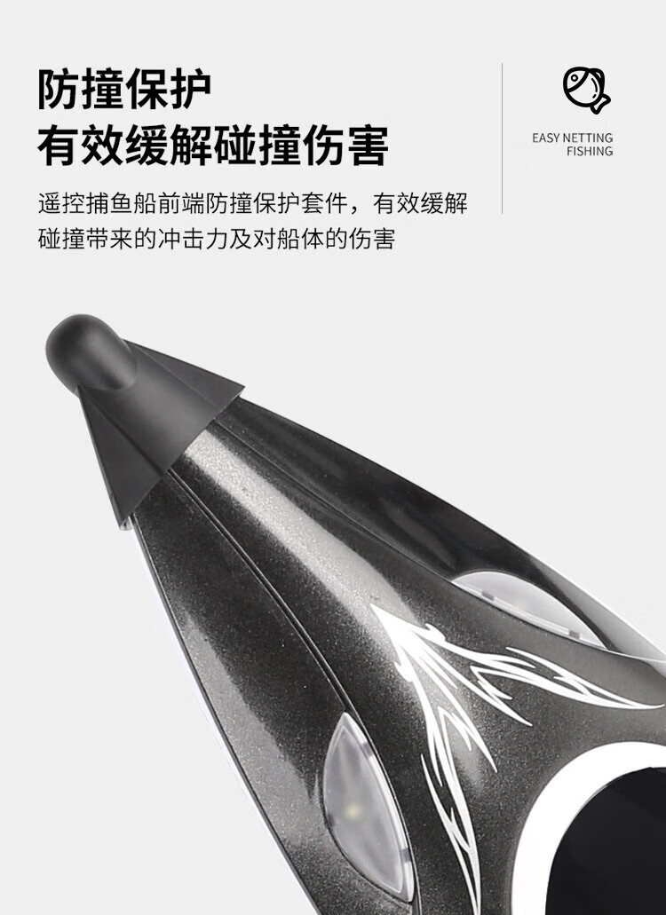 One-button decoupling of the dragnet boat. New remote-controlled dragnet boat. Super high-power long-distance speedboat fishing dragnet. Black dragnet boat - automatic decoupling with a button.