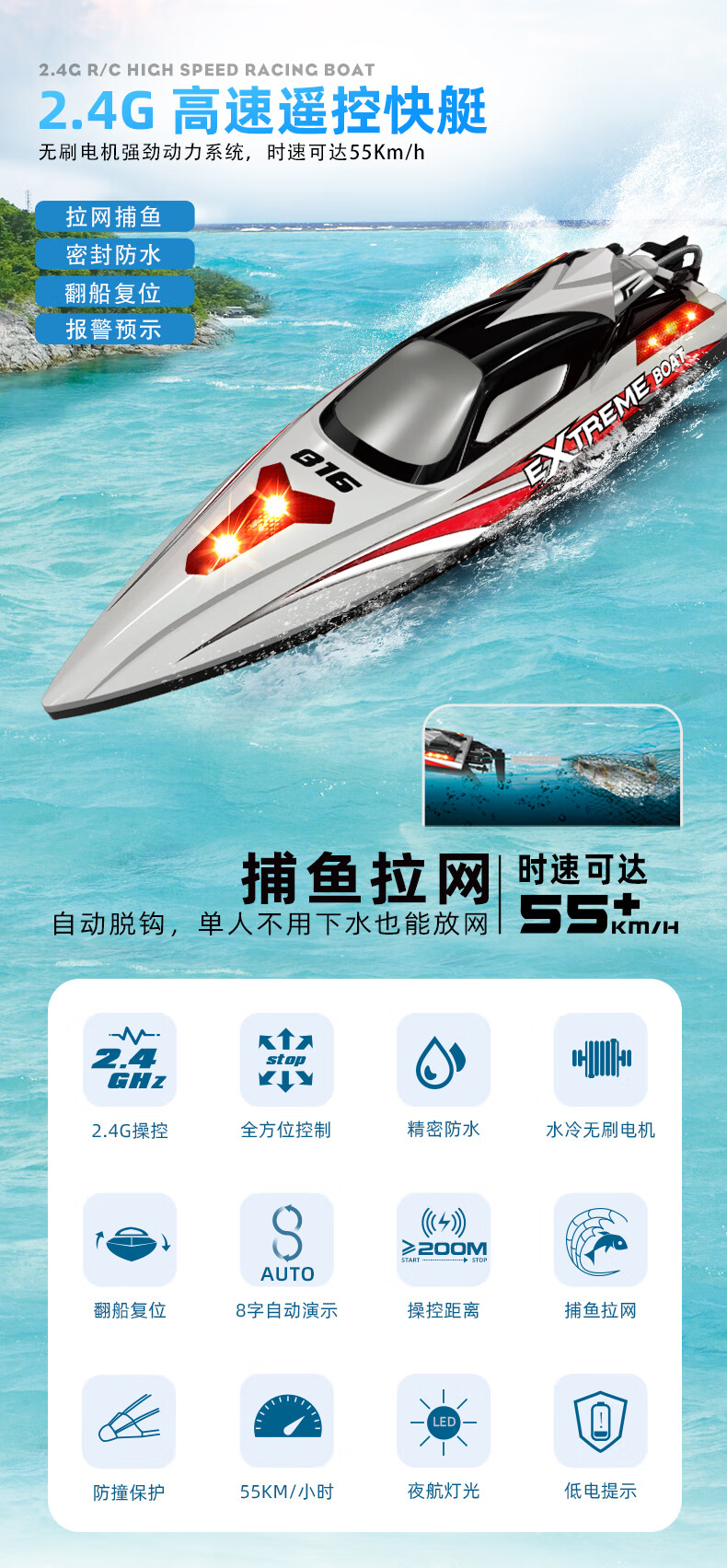 Zailu brushless ultra-high power pull net special remote control boat can launch high-speed speedboats and launch the net artifact high-horsepower boat large green suitable for pulling wires across the river and can pull 50 meters 1 battery + free spare parts