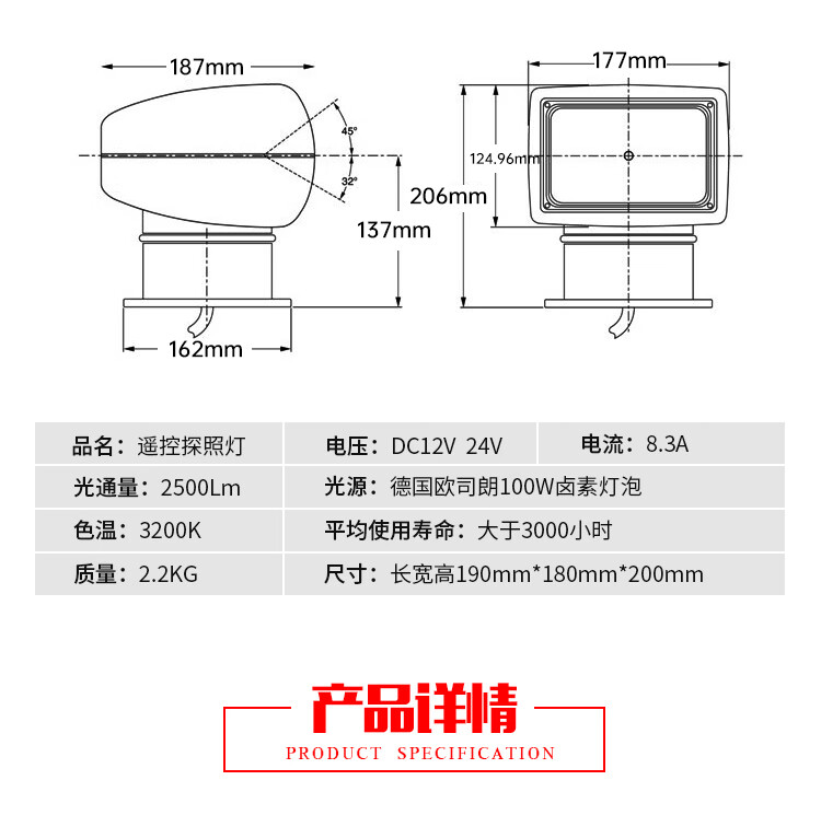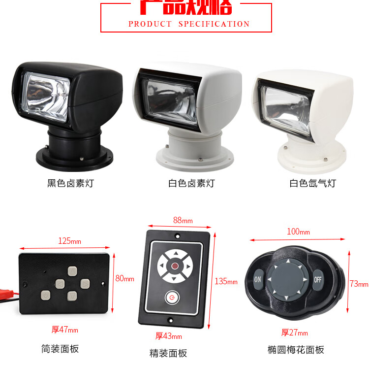 Zailu yacht searchlight 12v halogen 24v xenon lamp speedboat remote control fishing boat marine searchlight equipment accessories white 12V halogen lamp simple installation