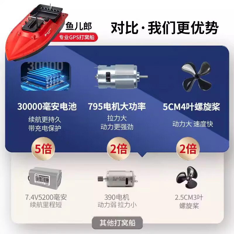 Yuerlang S70 Terminator speedboat type 12V fishing remote control boat one-click return GPS positioning nest making boat S70 Terminator ordinary single compartment (2 30A batteries) + decoupler