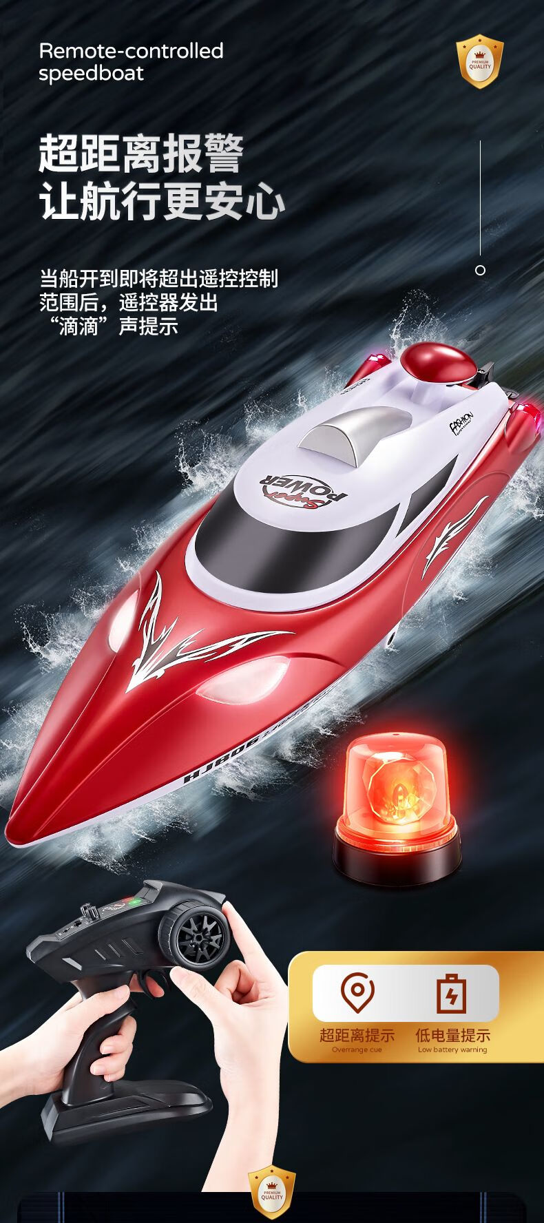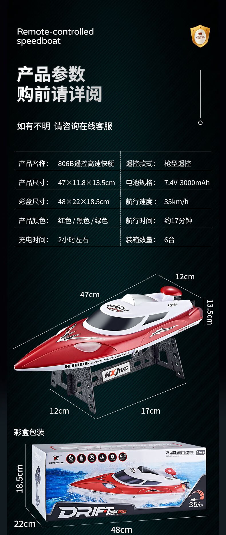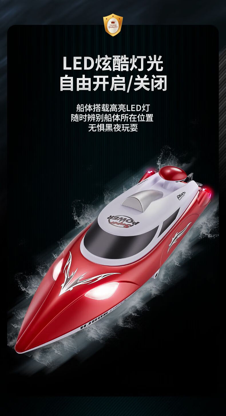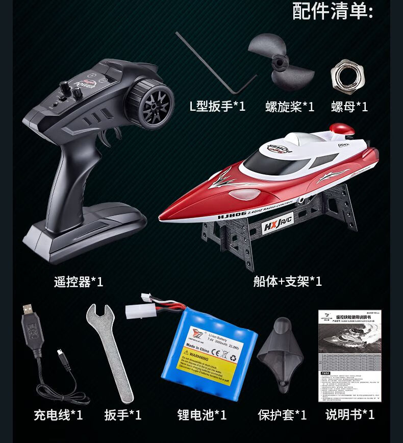 Hongxunjie HJ806B remote control speedboat upgraded lithium battery lighting capsize reset water practice red upgraded version (Chinese packaging)