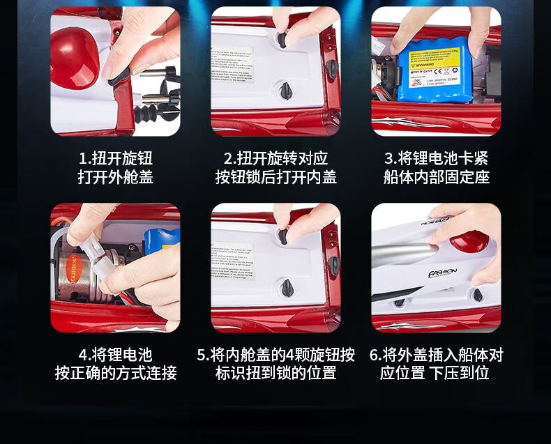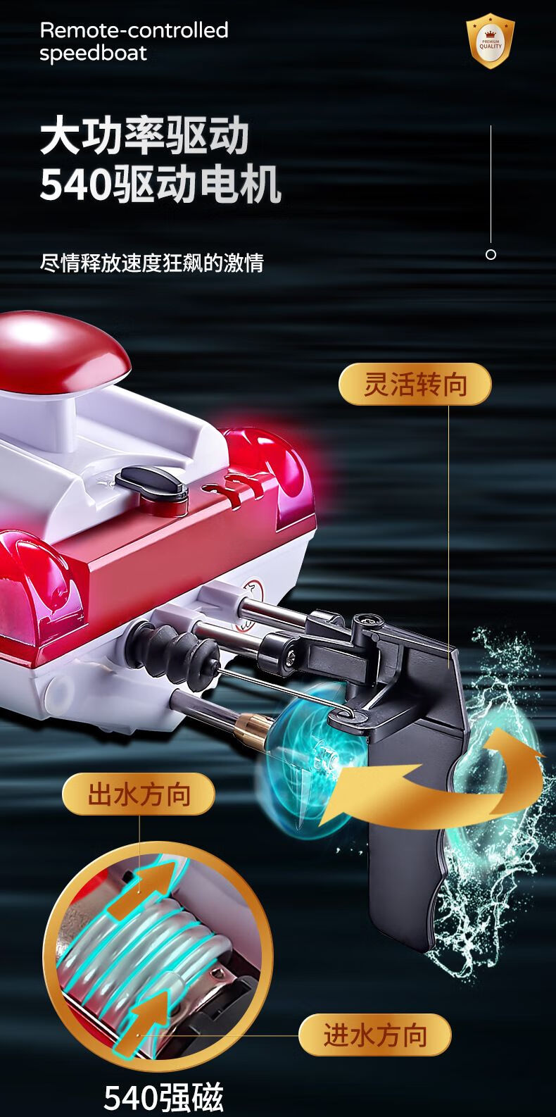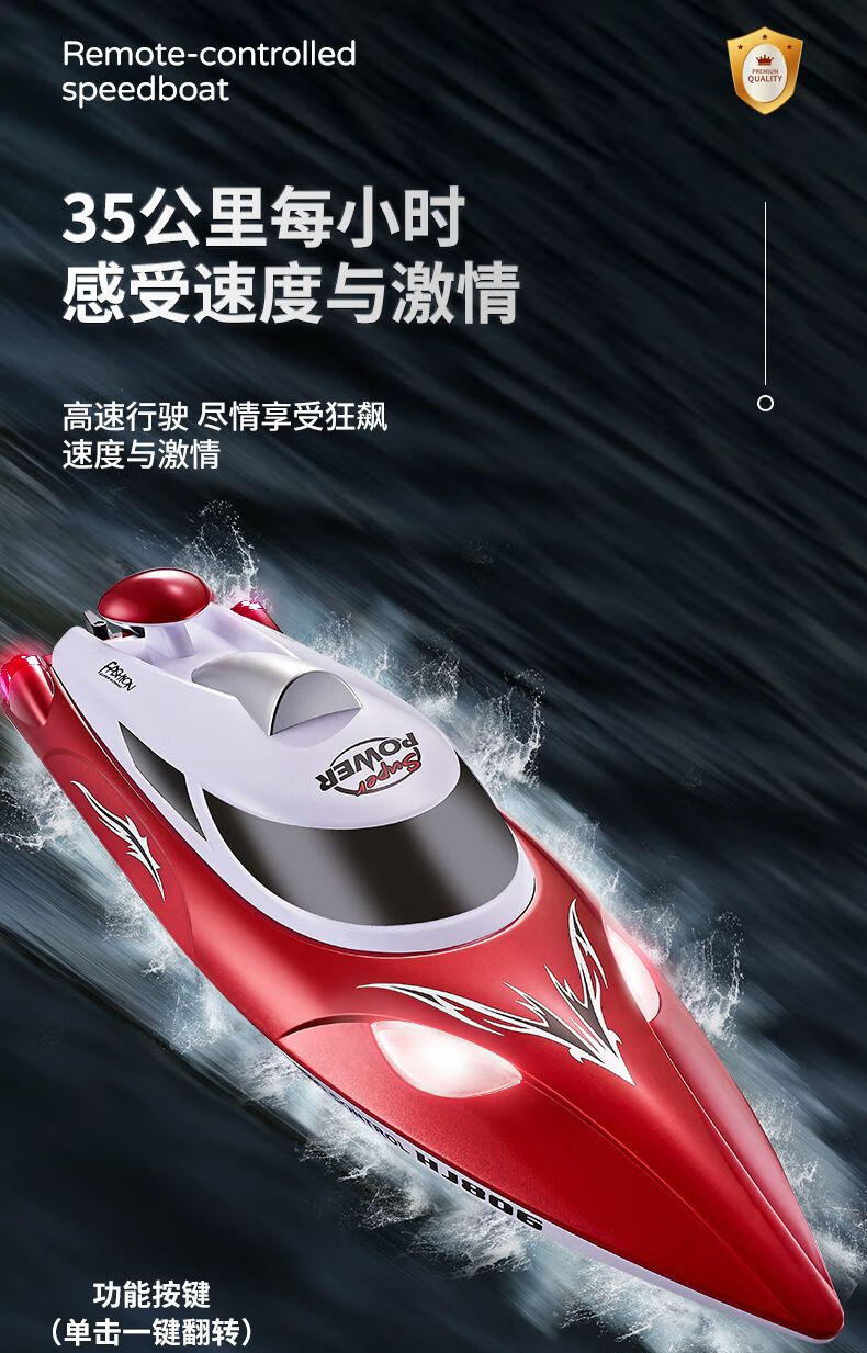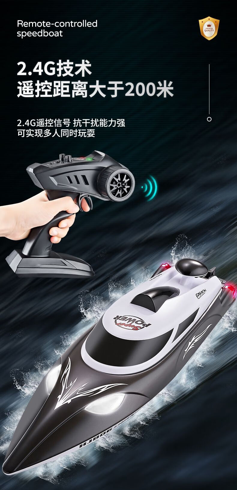 Hongxunjie HJ806B remote control speedboat upgraded lithium battery lighting capsize reset water practice red upgraded version (Chinese packaging)