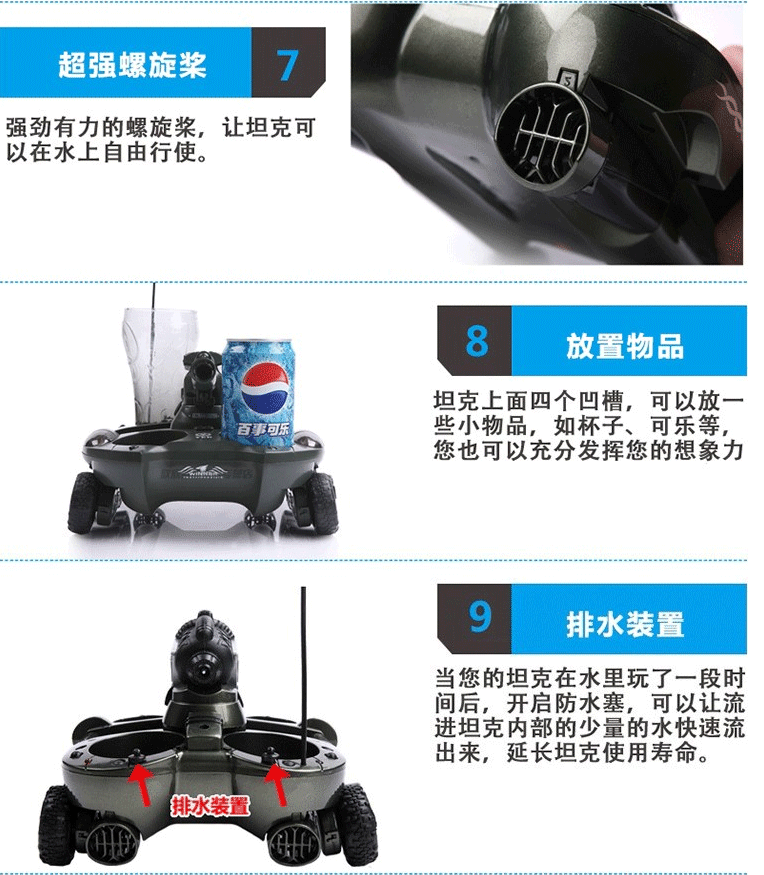 Remote control tank, amphibious vehicle, tank boat, deformable launcher, four-wheel drive off-road vehicle, children's toy, remote control boat gift, multifunctional tank water spray model