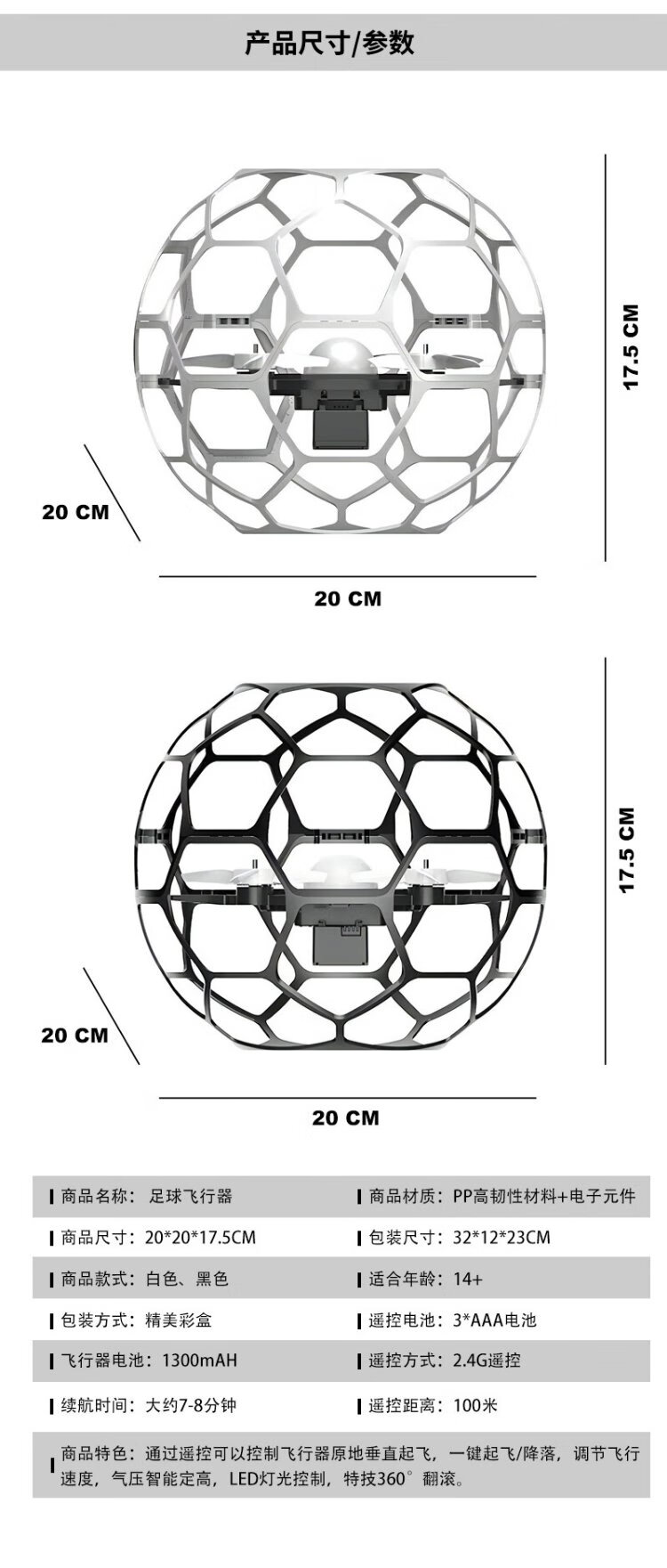 Alien Football Drone Primary School Teenage Competition Special Children's Remote Control Aircraft White Dual Battery (No Aerial Version)