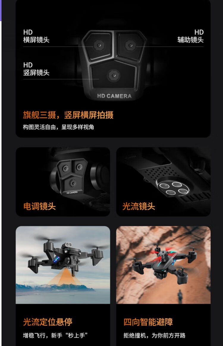 2024 new UAV obstacle avoidance aerial photography high-definition professional GPS remote control aircraft children's toy quadcopter three-camera anti-shake-fixed-point hover obstacle avoidance model 3 batteries