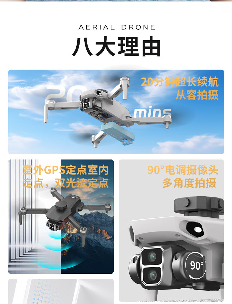 LYZRC novice aerial photography drone brushless motor ESC aerial photography optical flow hovering remote control aircraft toy quadcopter gray white - ordinary remote control three electric version (send 64G memory card)