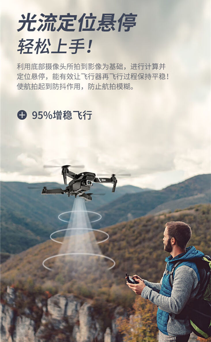 Qilicai UAV dual camera HD aerial photography quadcopter remote control aircraft e88 black-dual camera 1 battery package
