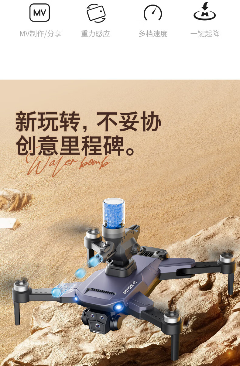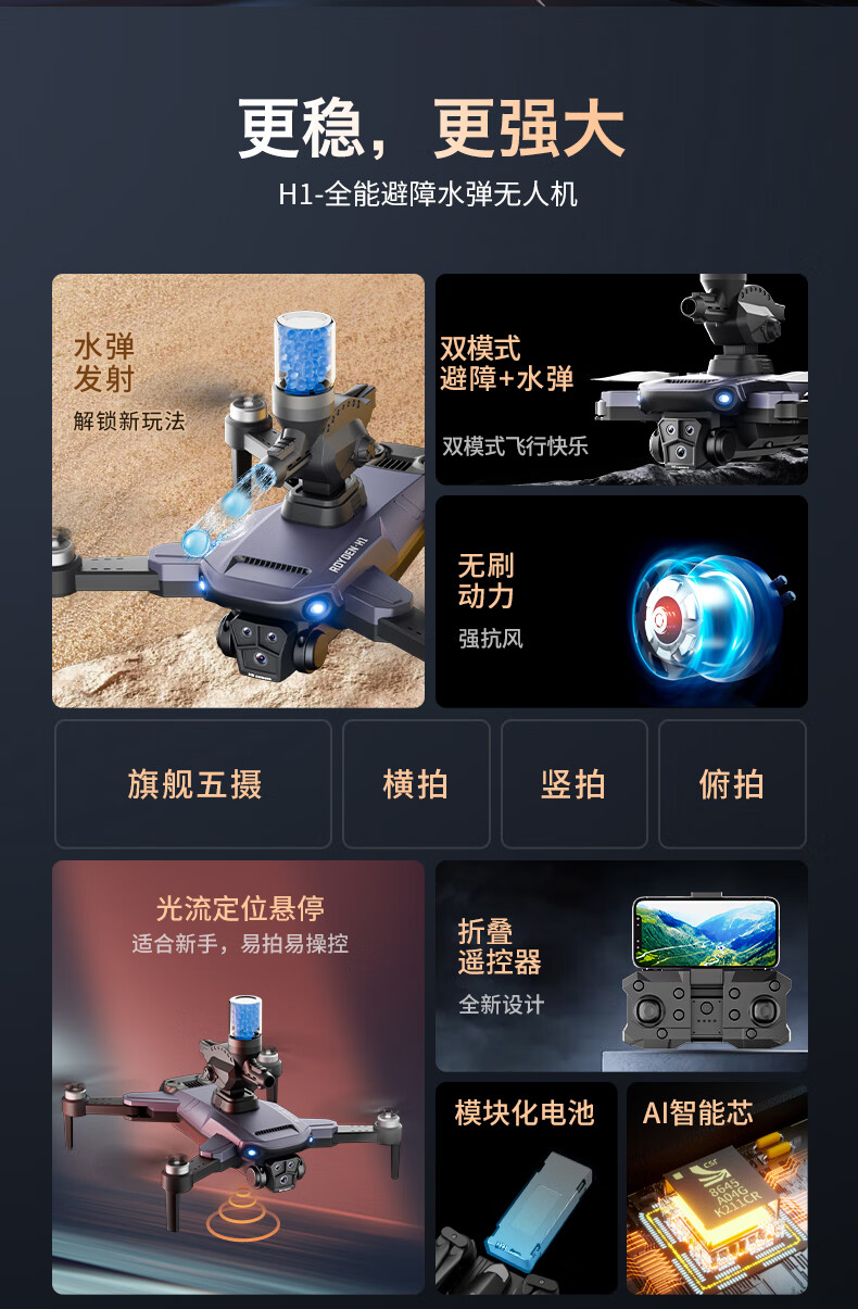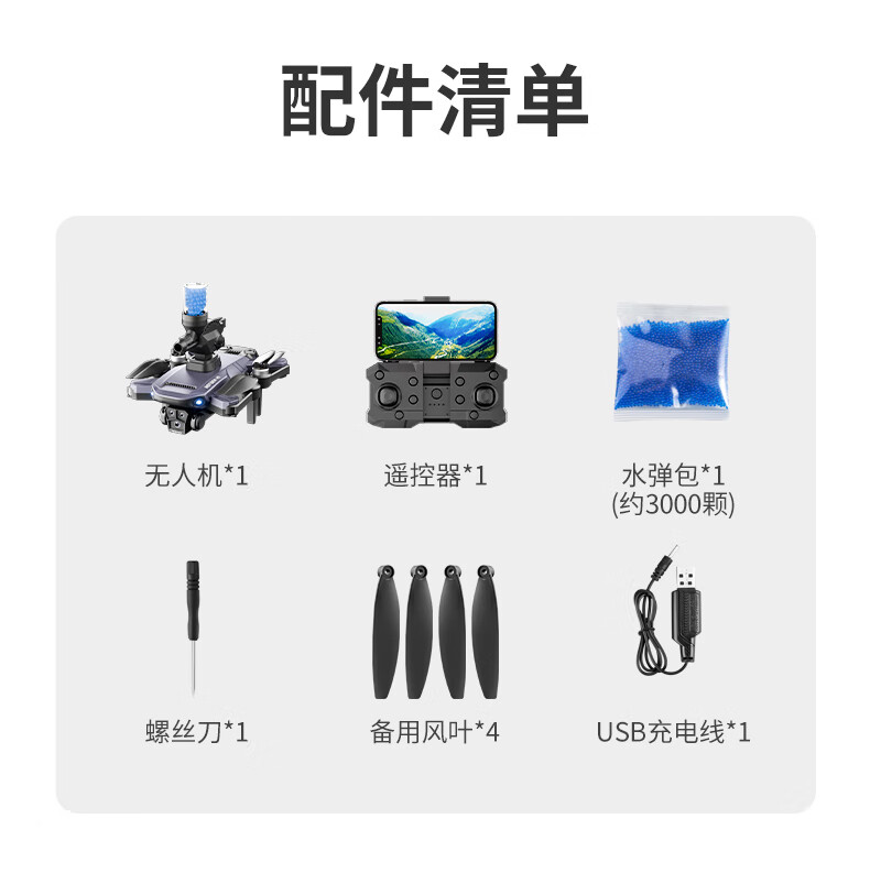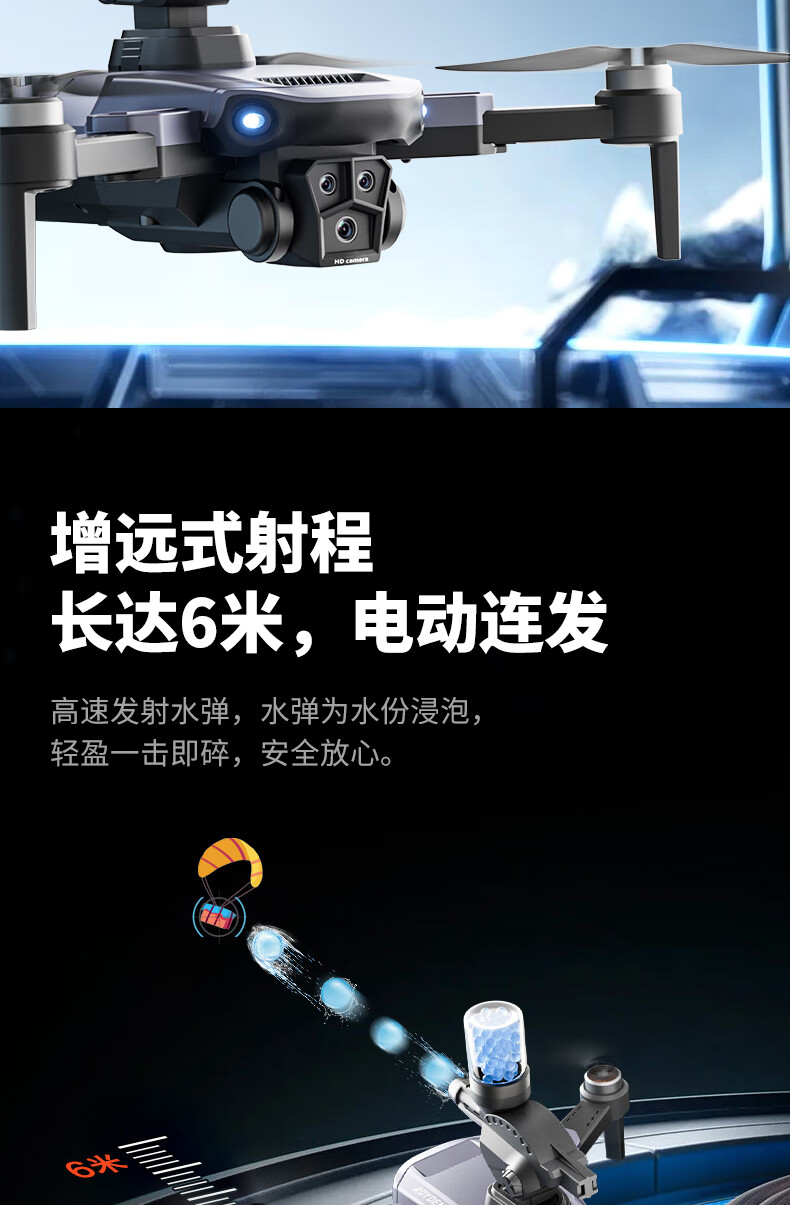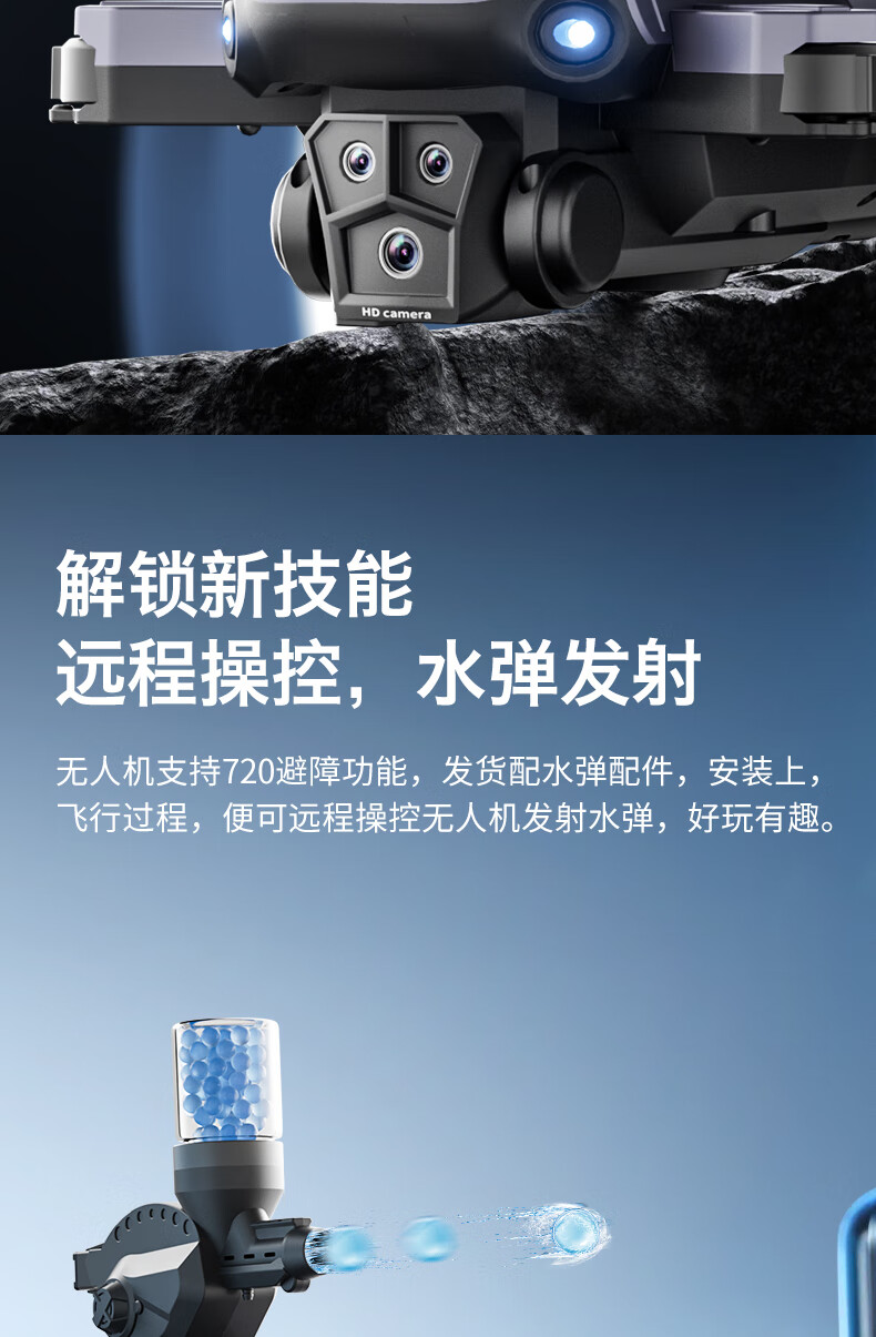 Intelligent high-end UAV that can launch water bombs, aerial photography, high-definition professional remote control aircraft, entry-level small quadcopter for children and primary school students, water bomb model, brushless motor + remote control lens + optical flow positioning 2 batteries, replace with new ones + warranty + wearing parts