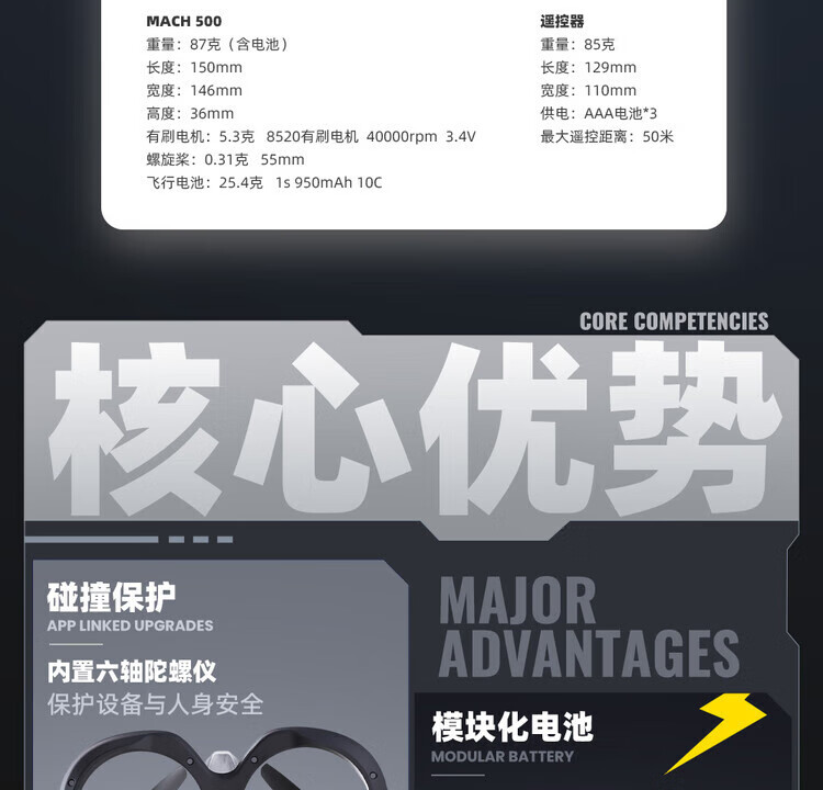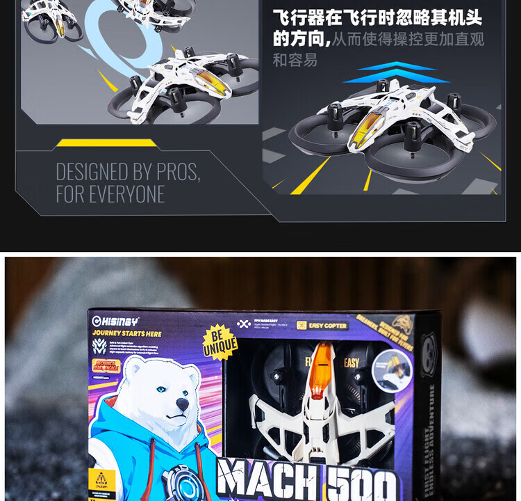Xingqi World Mach 500 four-axis drone toy remote control aircraft introductory learning gift for primary school students official standard configuration (aircraft + remote control + battery + charging cable)