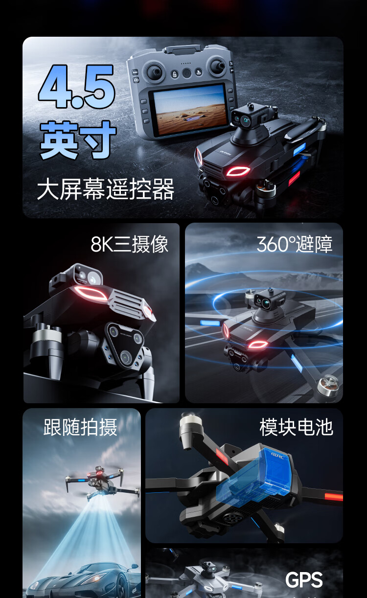 4DRC Drone Flagship Store 2025 New Drone Aerial Photography HD GPS Obstacle Avoidance Adults High-end Children Black Technology Remote Control Aircraft Drone Flight Camera Intelligent Return to Home Defense Single Battery-8K Triple Camera-GPS Dual Positioning 4.5-inch Large Screen 10cm Guidance x Original Genuine