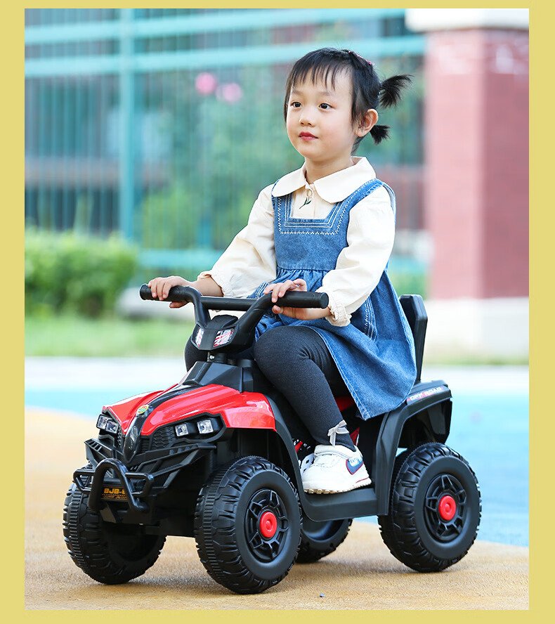 Haolewa children's electric car four-wheel car charging remote control stroller can sit on baby toy car red big battery with light music + remote control