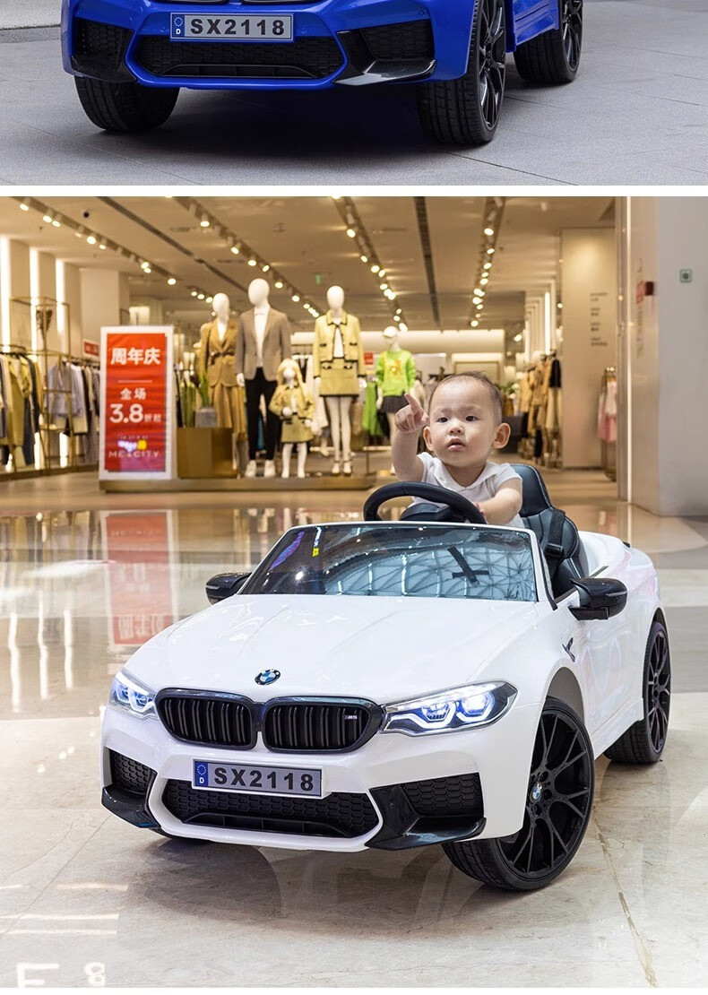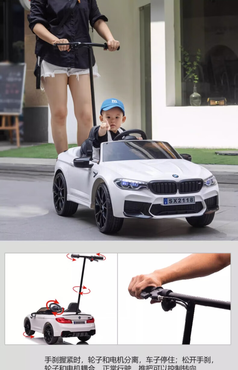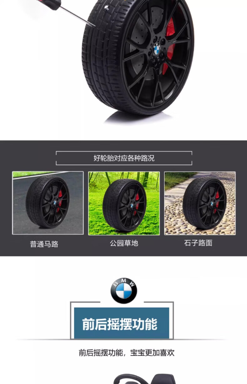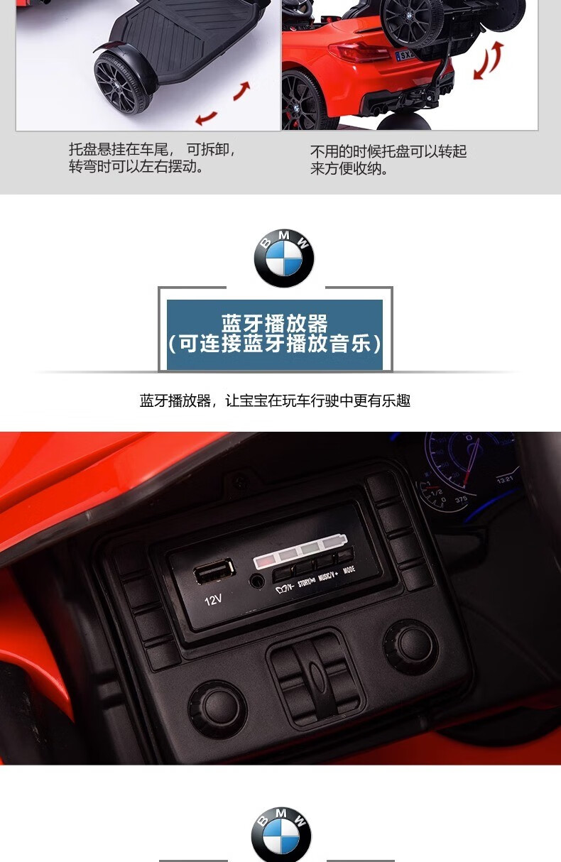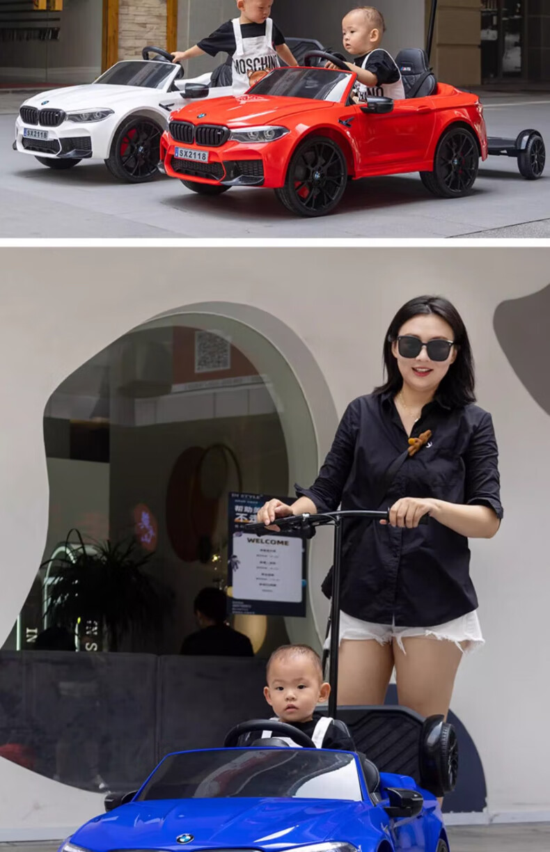 Haolaixi BMW children's electric car four-wheel car remote control toy car can sit and stand adults and children with swing baby stroller, top with blue + adult standing plate + remote control swing + soft wheel leather seat + push rod + Bluetooth
