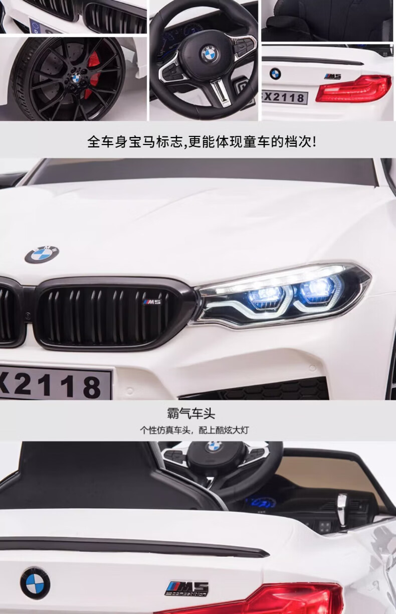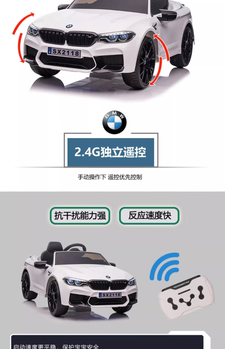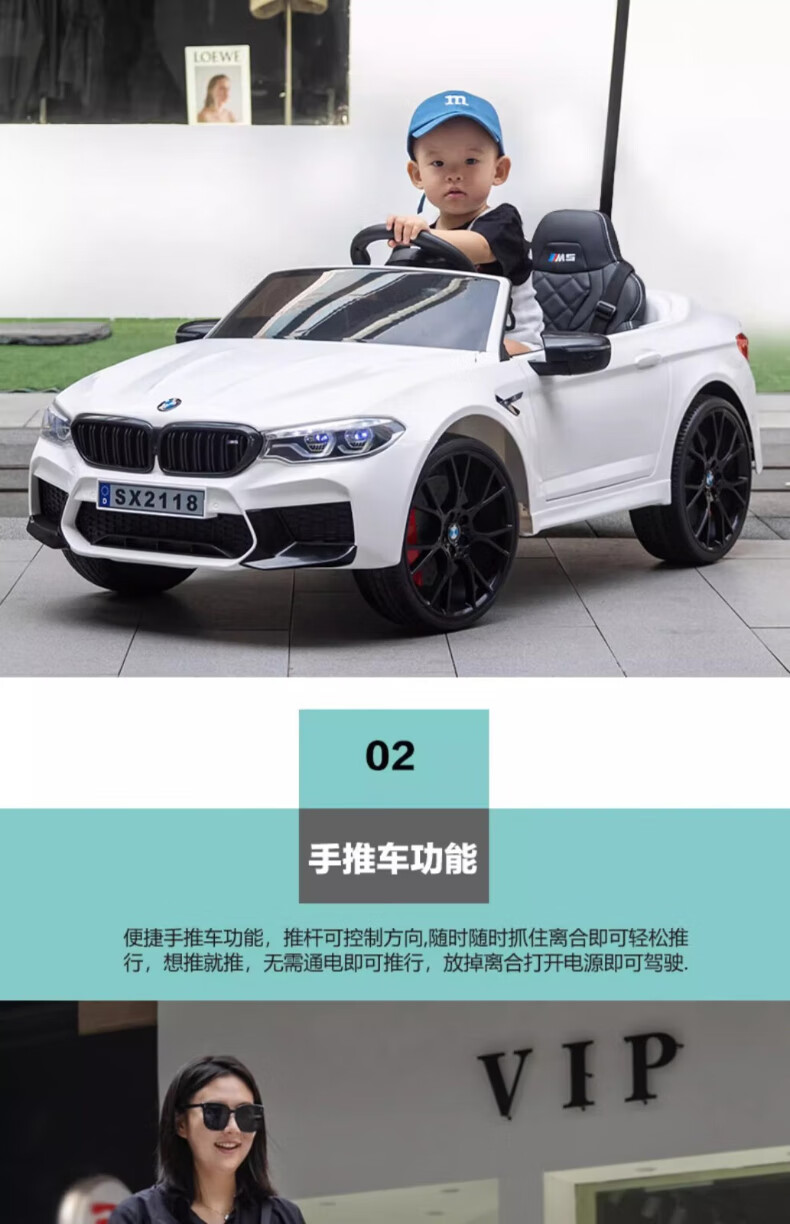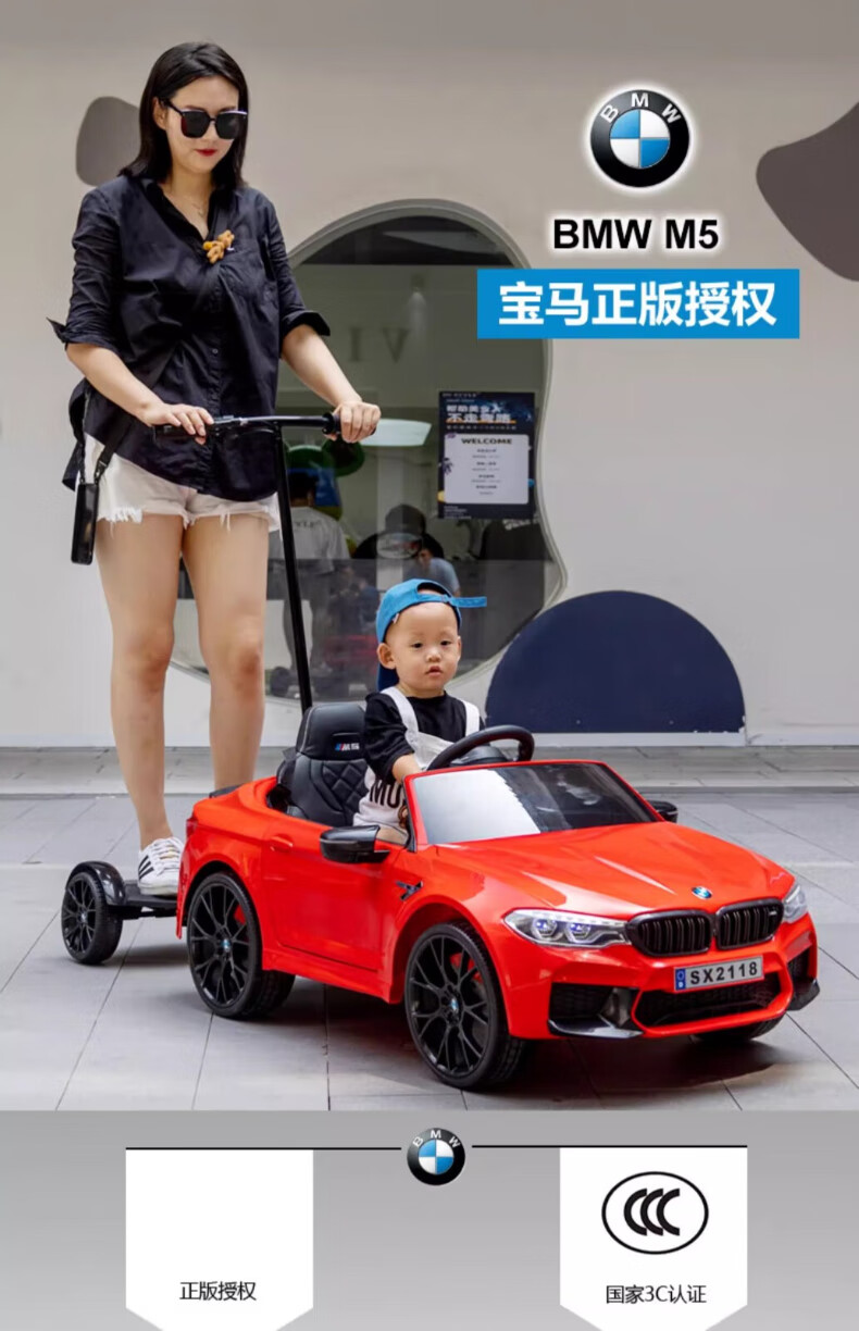 Haolaixi BMW children's electric car four-wheel car remote control toy car can sit and stand adults and children with swing baby stroller, top with blue + adult standing plate + remote control swing + soft wheel leather seat + push rod + Bluetooth