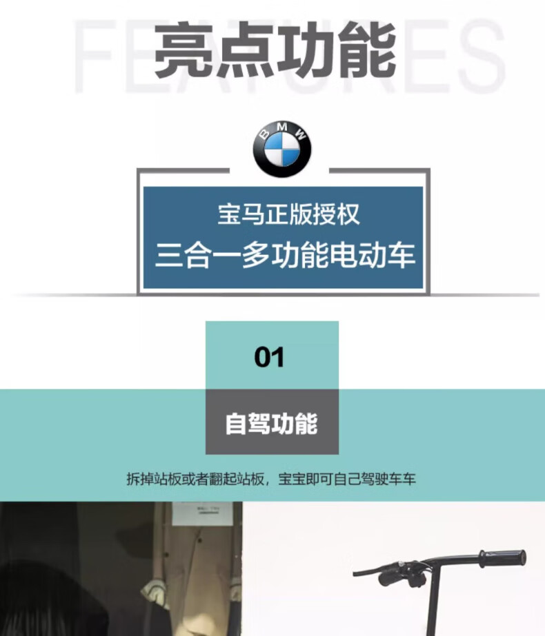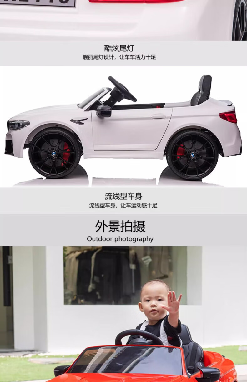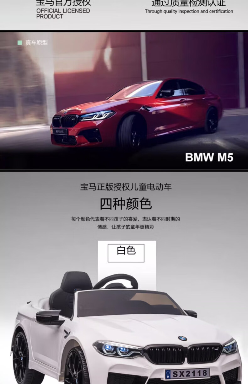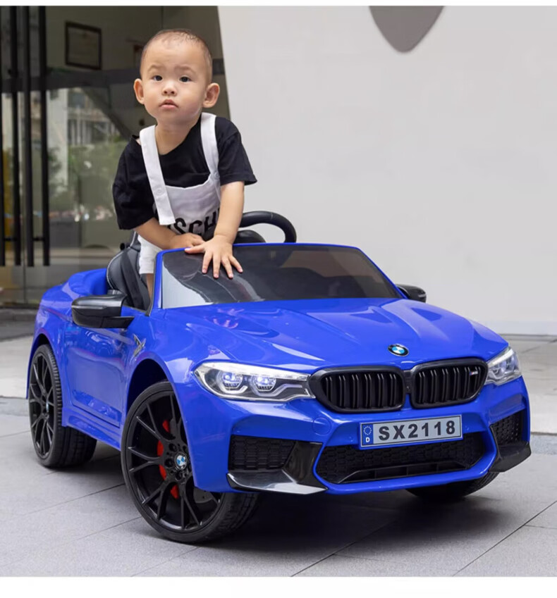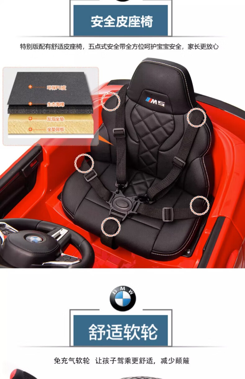 Haolaixi BMW children's electric car four-wheel car remote control toy car can sit and stand adults and children with swing baby stroller, top with blue + adult standing plate + remote control swing + soft wheel leather seat + push rod + Bluetooth