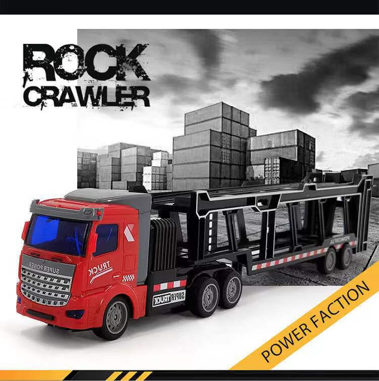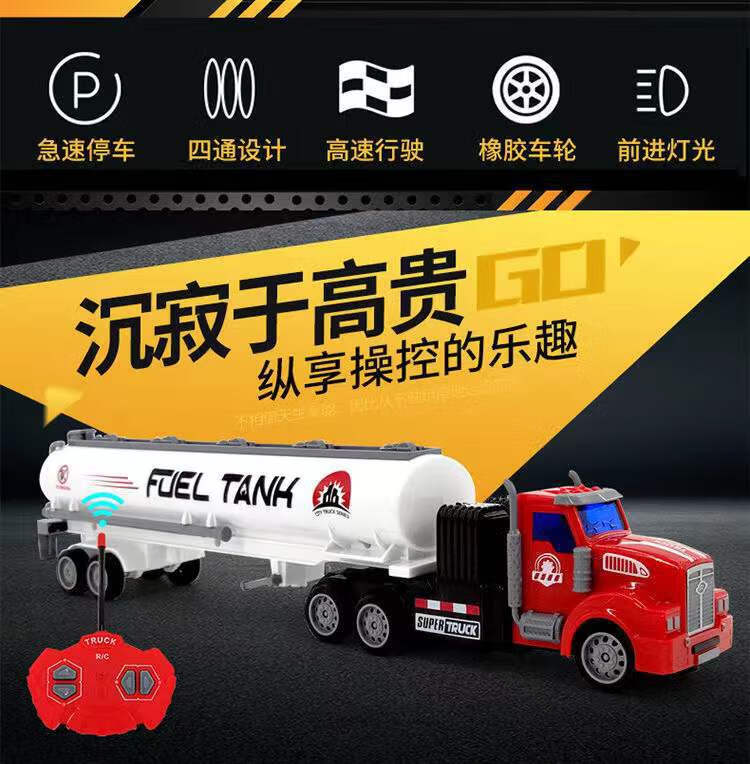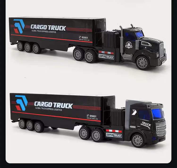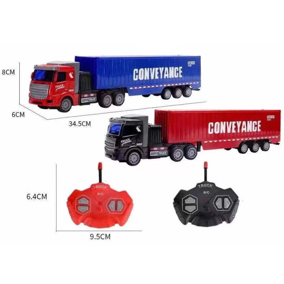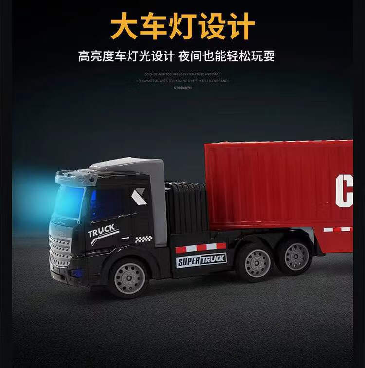 Children's remote control wireless alloy container transport truck large truck four-way charging battery black American style front + black container