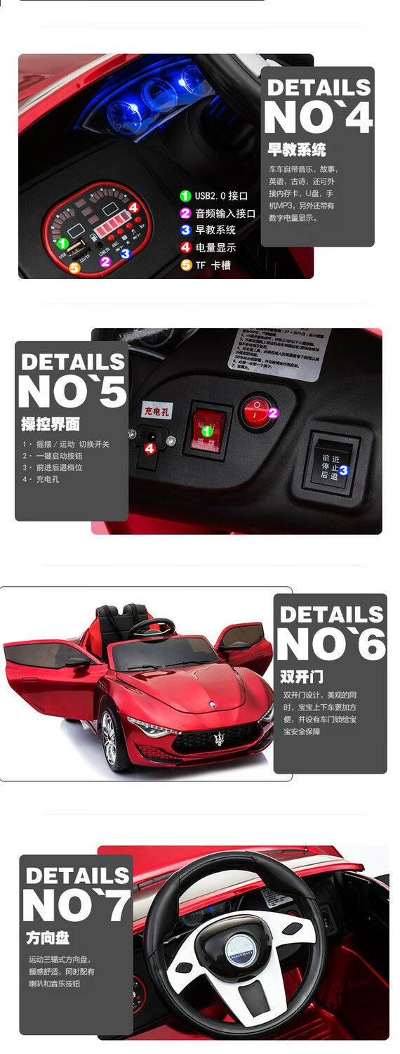 Haowa (HAOWA) Maserati children's electric car four-wheel car baby toy car can sit on the remote control car for boys and girls, fashionable white + remote control + swing + early education + mobile phone blue electric drive