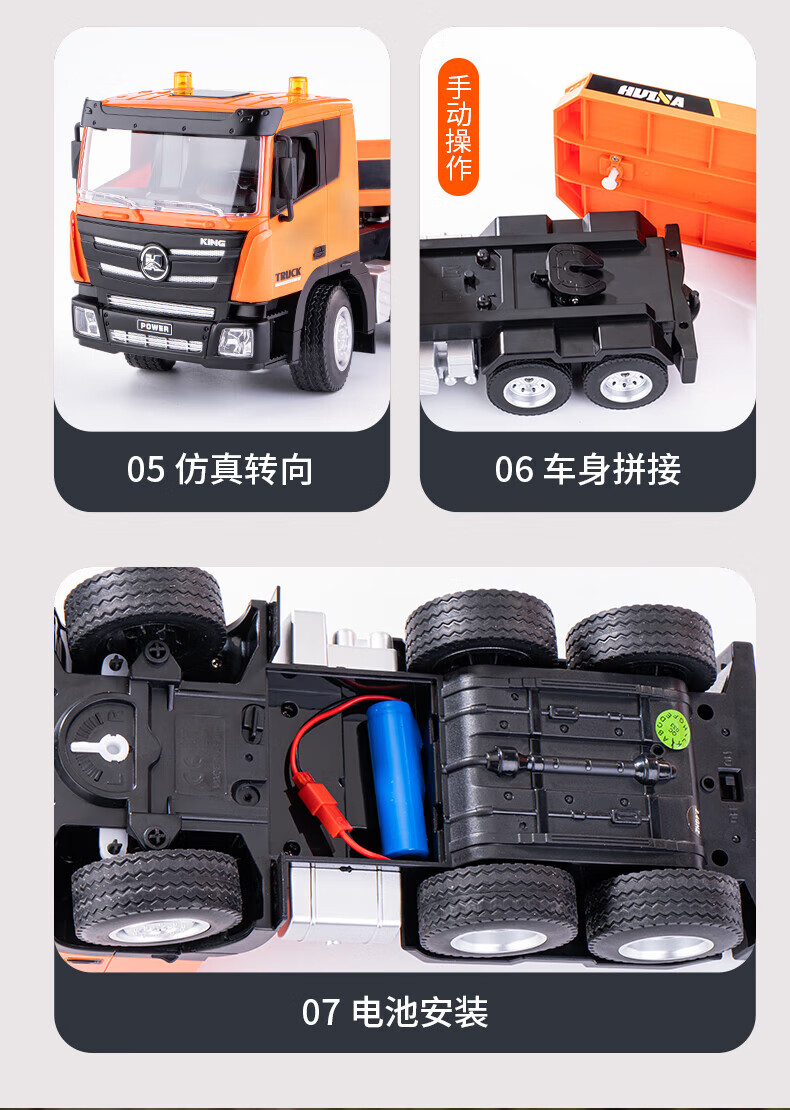 Zhouke remote control large truck large trailer truck flatbed transport car engineering vehicle boy rechargeable children's electric vehicle remote control trailer + remote control 6-channel dump truck (each vehicle has three sets of rechargeable batteries with a battery life of about 75 minutes