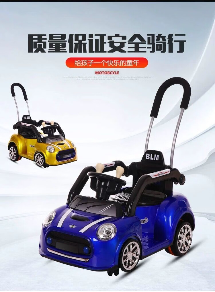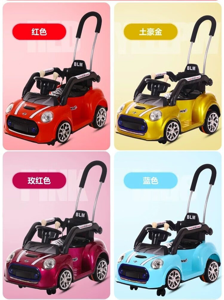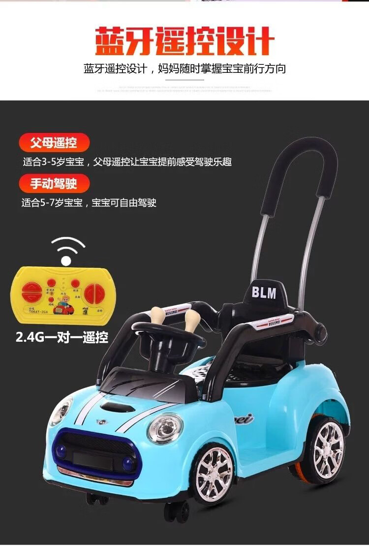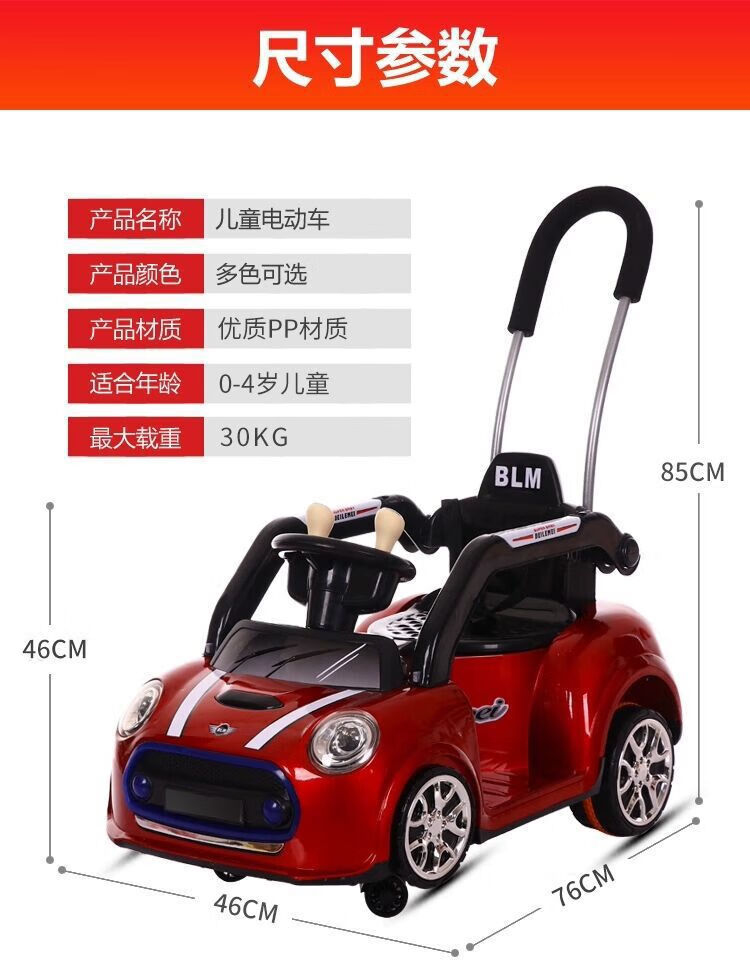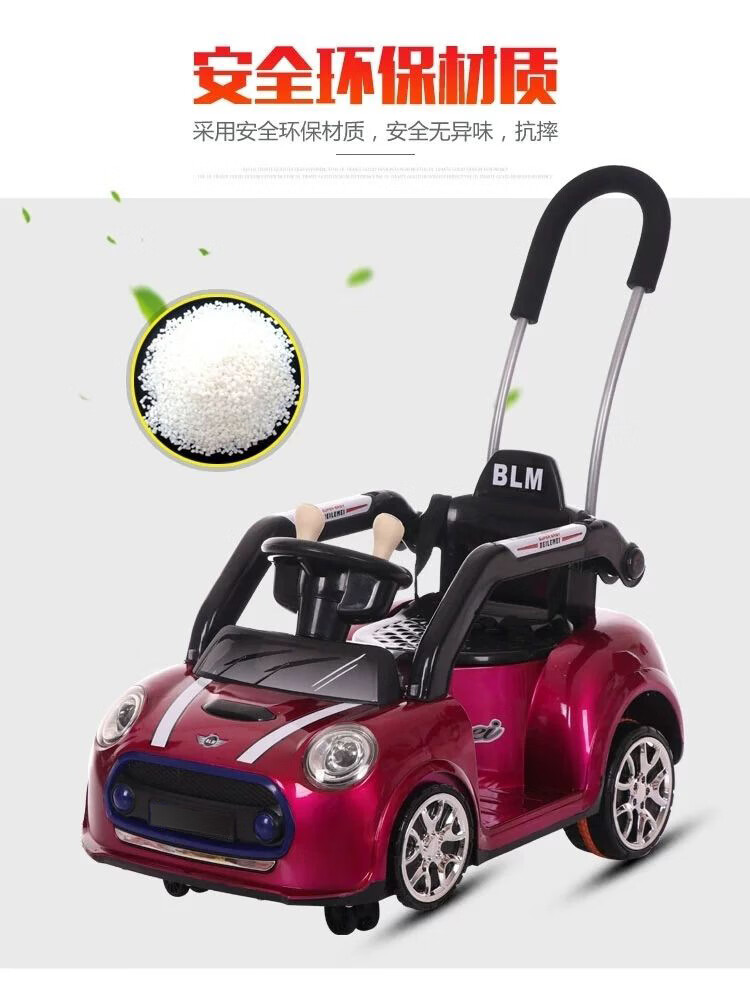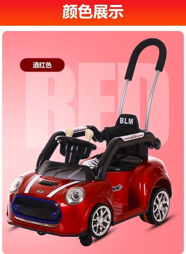 Babyjianle children's electric car four-wheel swing stroller push dual drive remote control baby toy can be red paint + 2.4 remote control + push rod + swing