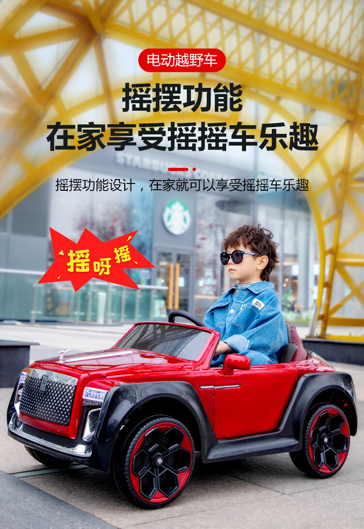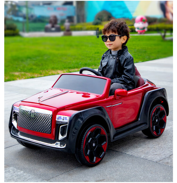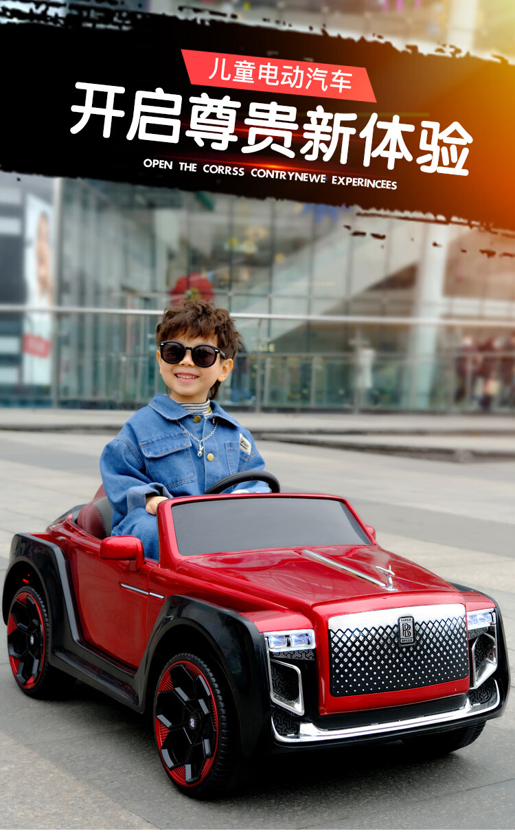 Rolls-Royce children's electric four-wheel car, children's remote control toy car, charging, adult swinging stroller, painted red top with explosion-proof soft tires/four-wheel drive/large battery/leather seat, remote control/self-driving/swing/trunk/Bluetooth music/mobile phone APP/shock-absorbing/slow start