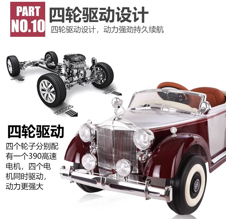 Coolpad Chi Rolls-Royce children's electric car classic car 1-6 years old male and female baby remote control can sit on four-wheel stroller gift flagship - off-white full function + multi-function remote control + five-point safety belt music swing + lifetime warranty