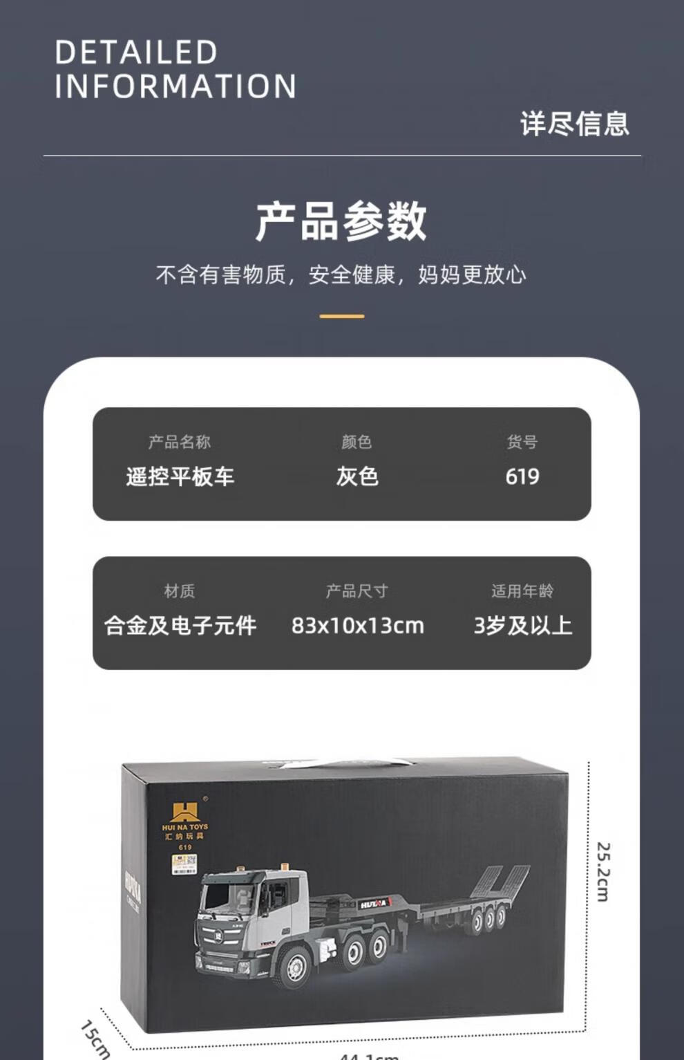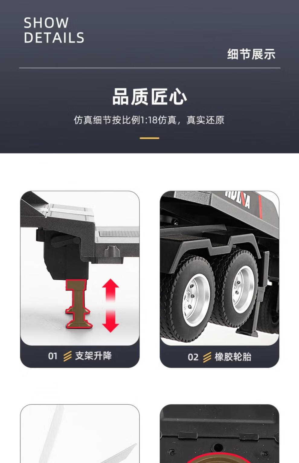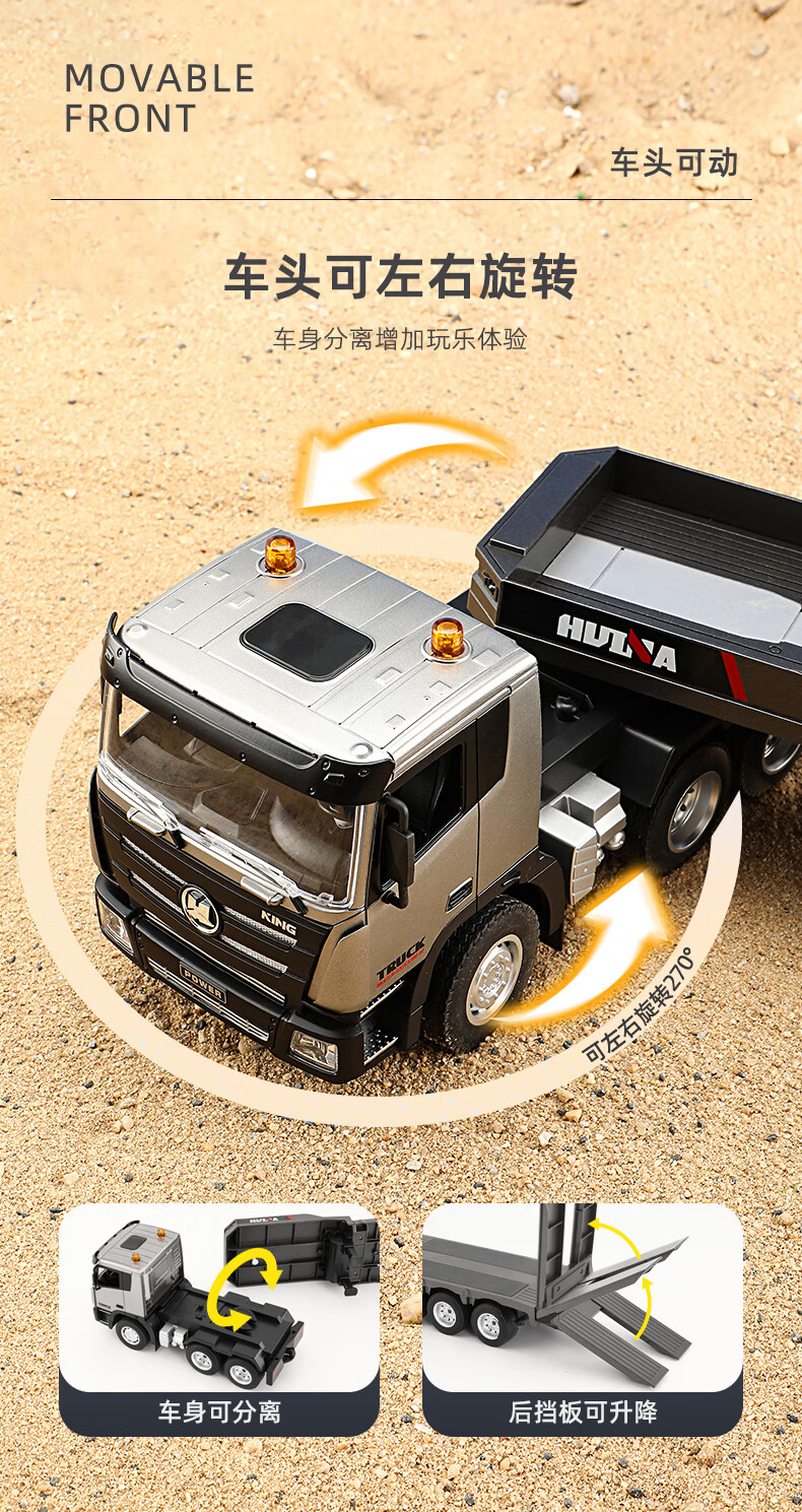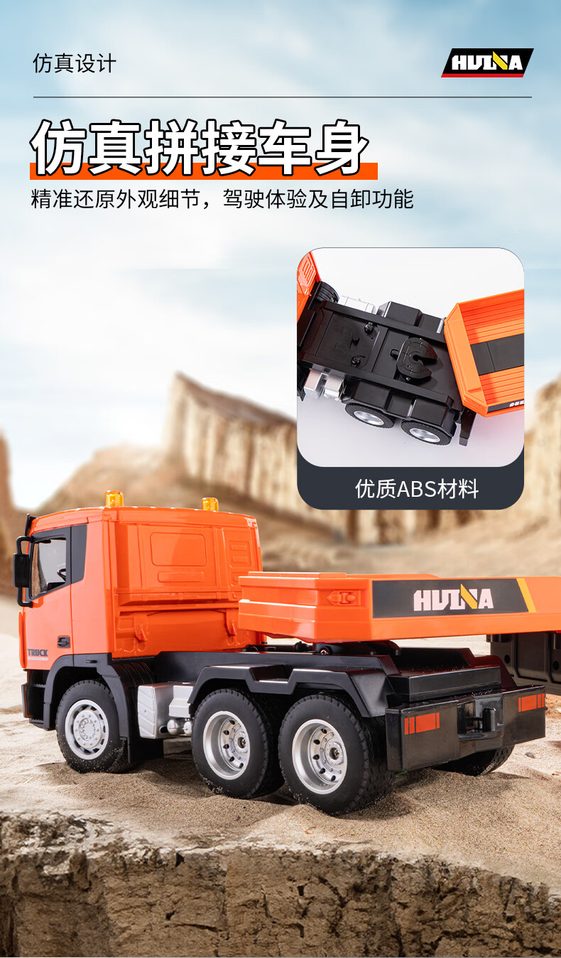 Zhouke rc truck model heavy truck semi-trailer large remote control trailer children's flatbed transport car engineering children's electric vehicle gray remote control flatbed trailer two sets of rechargeable batteries for each vehicle - about 50 minutes of battery life