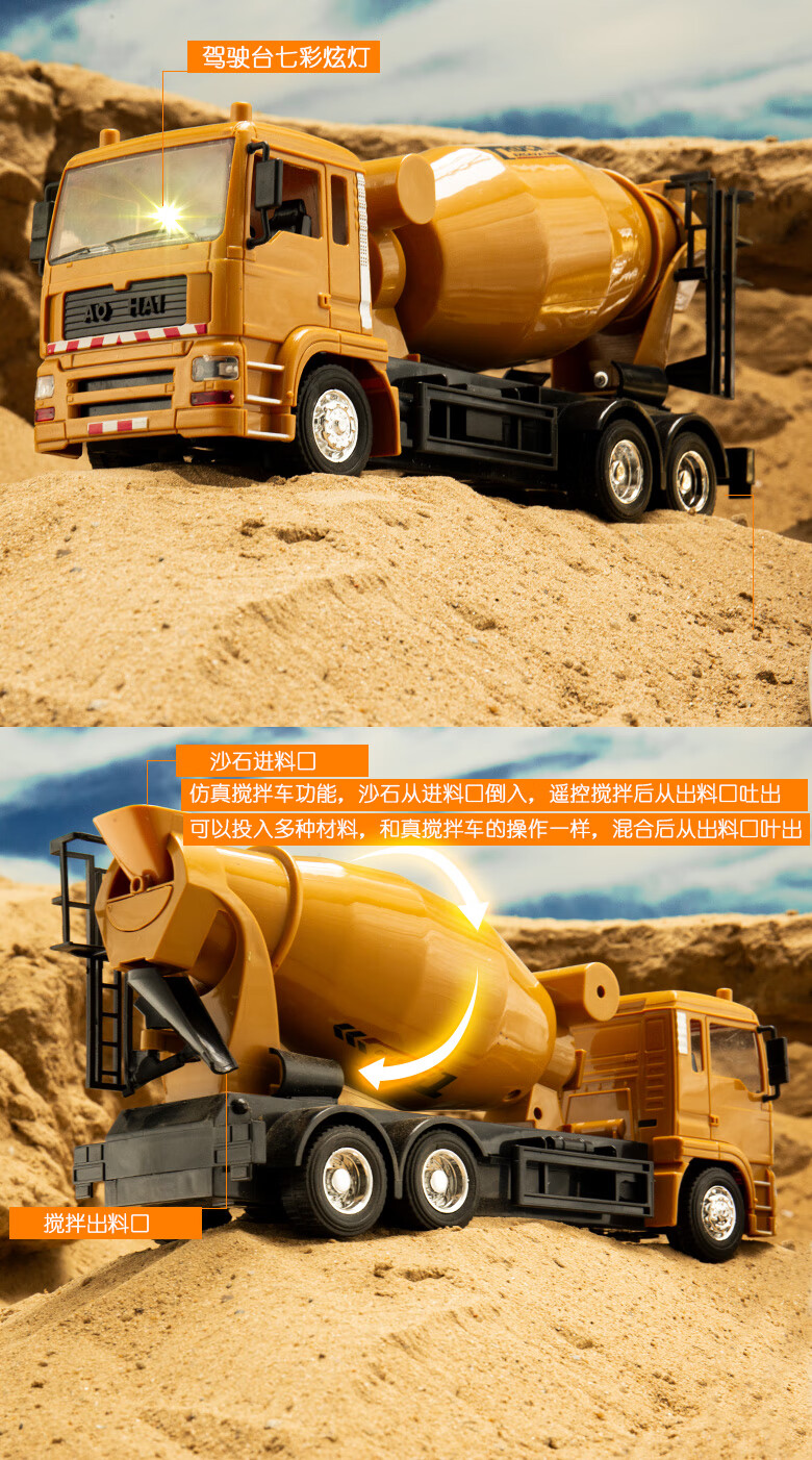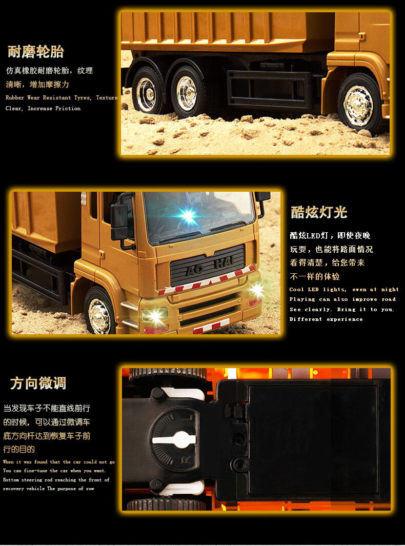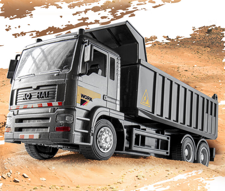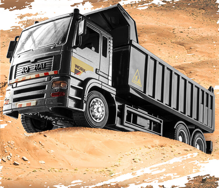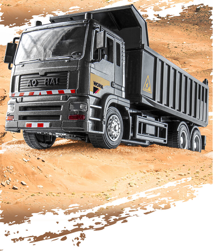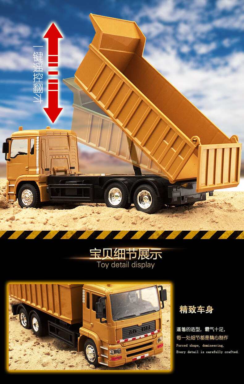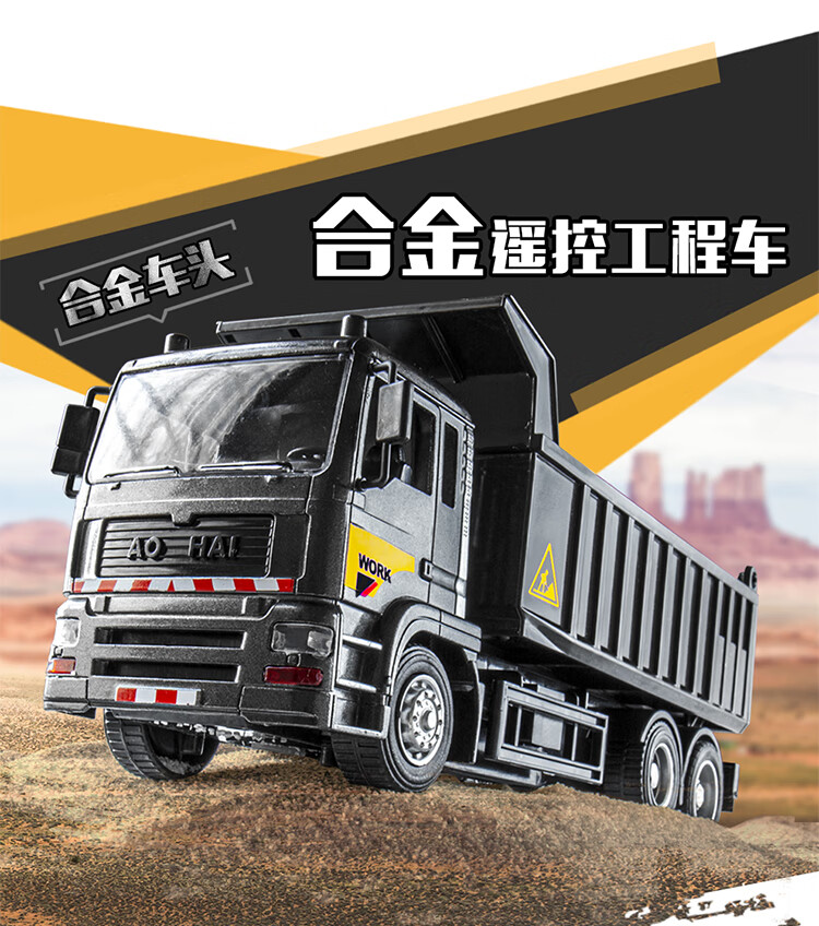 Zhouke 25 children's remote control truck toy electric dump truck boy engineering vehicle dump truck model truck mixer truck handle remote control dump truck black alloy version three sets of rechargeable batteries