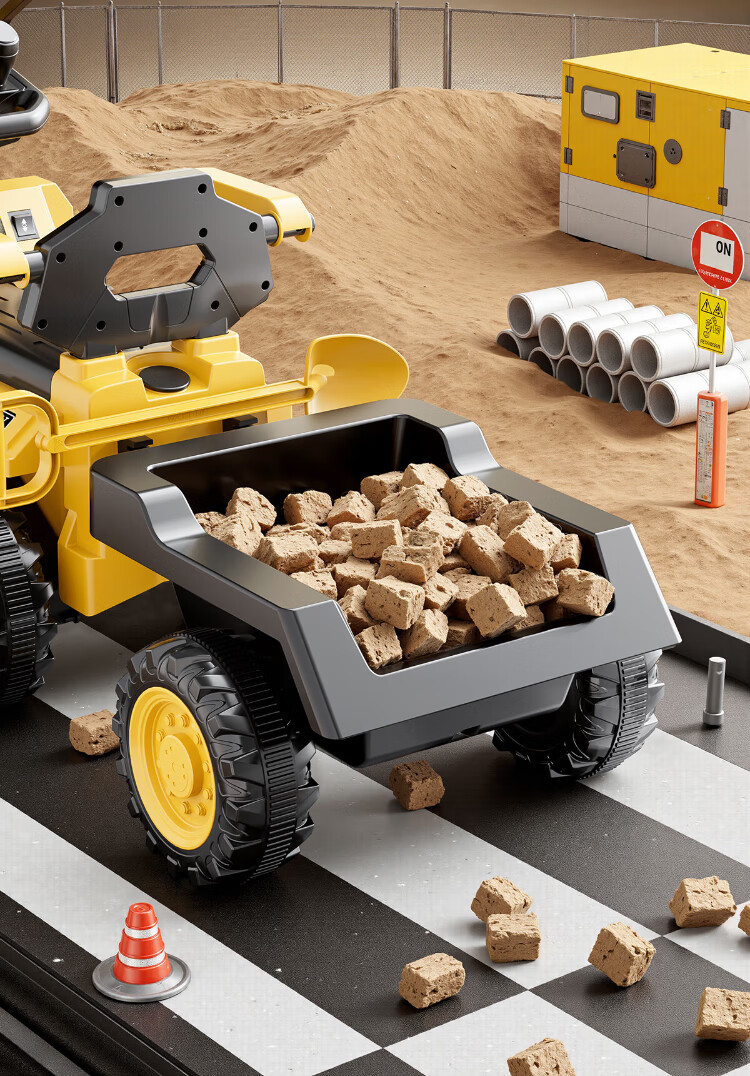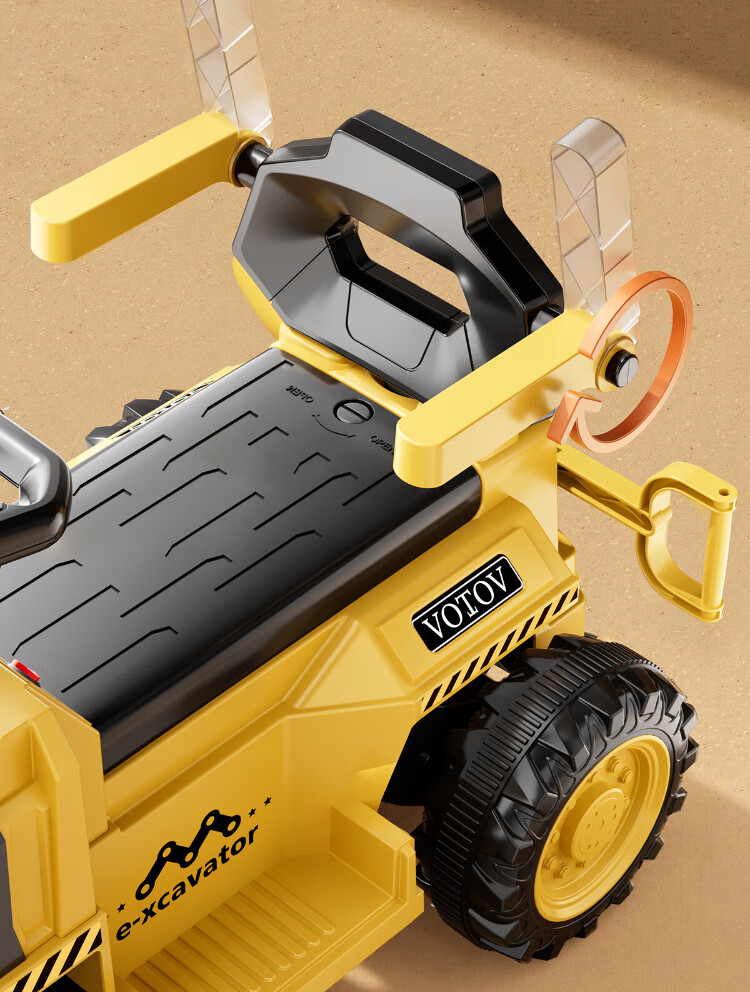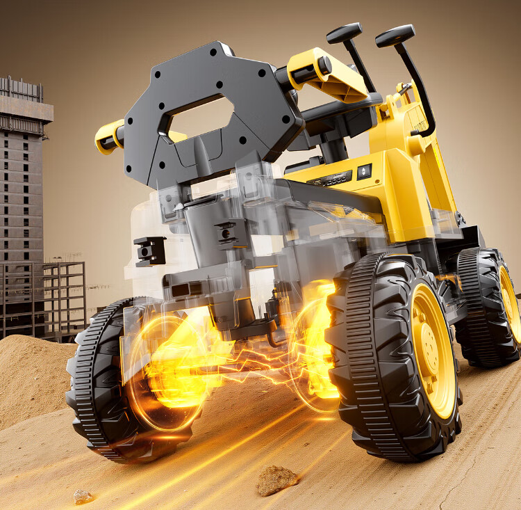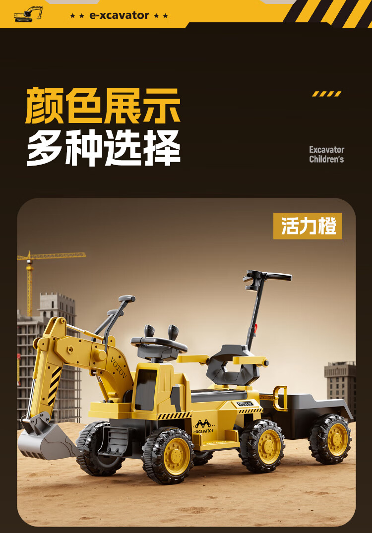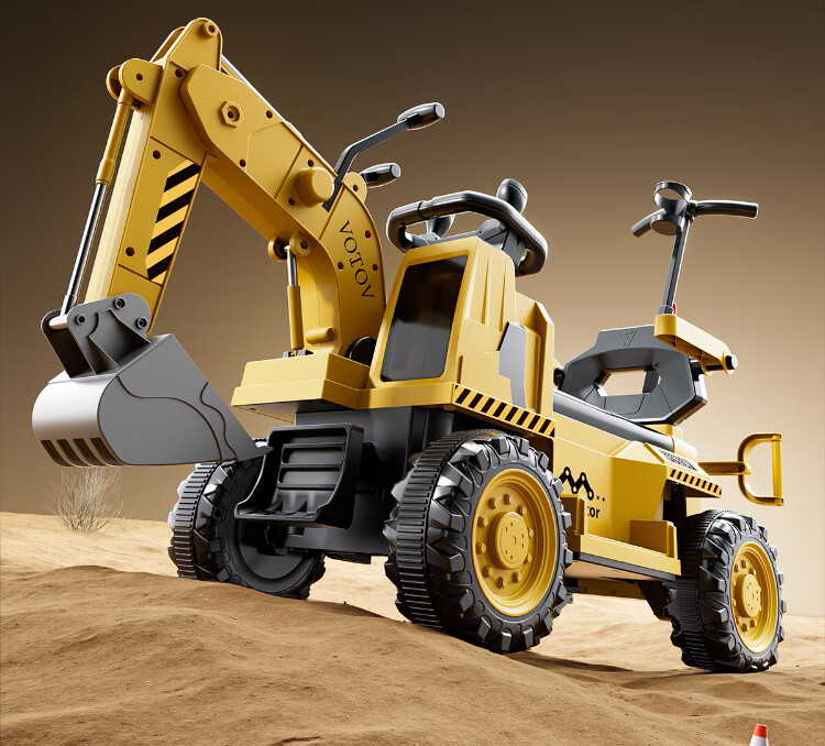 Haha strange children's electric excavator can sit on children's electric car, children's car toy car, large can sit on people digging soil gift, retro green | dual drive + 6V12A battery + push handle + remote control + gift