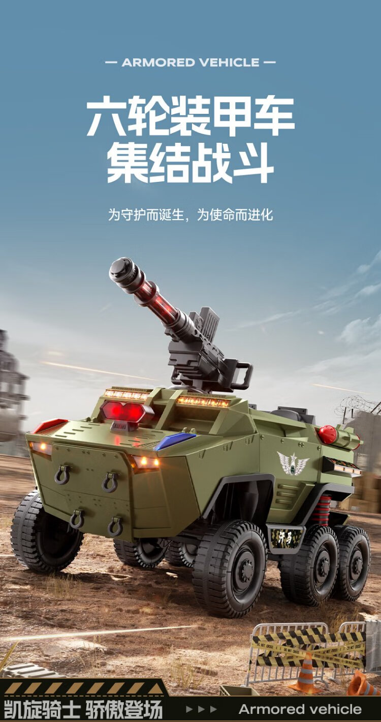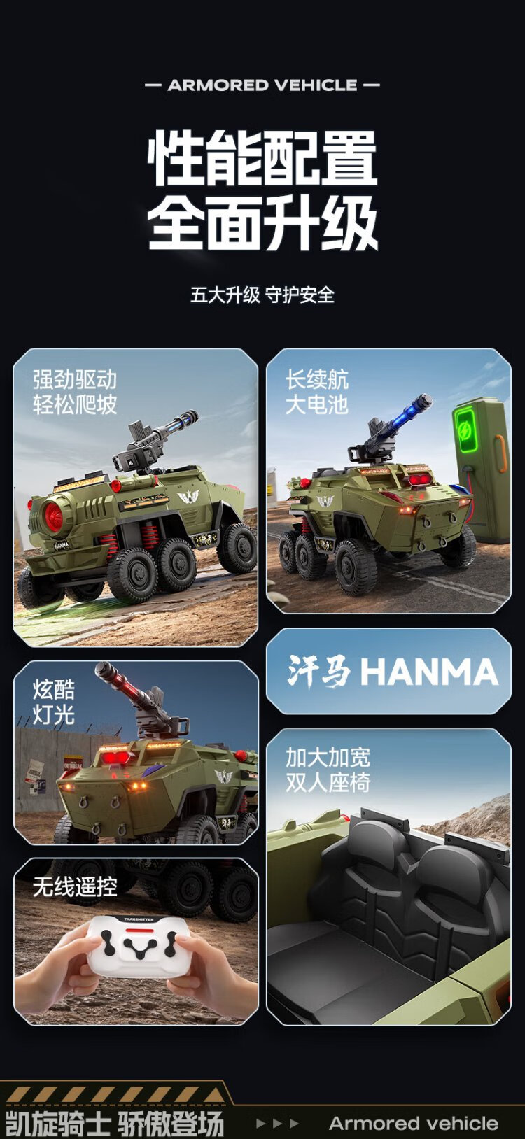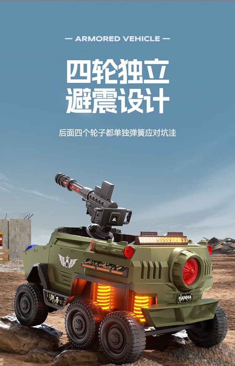 Hanma children's electric car children's electric car children's car drivable children's car armored car detachable barrel standard army green | four-wheel drive + 12V7A battery + remote control + detachable barrel