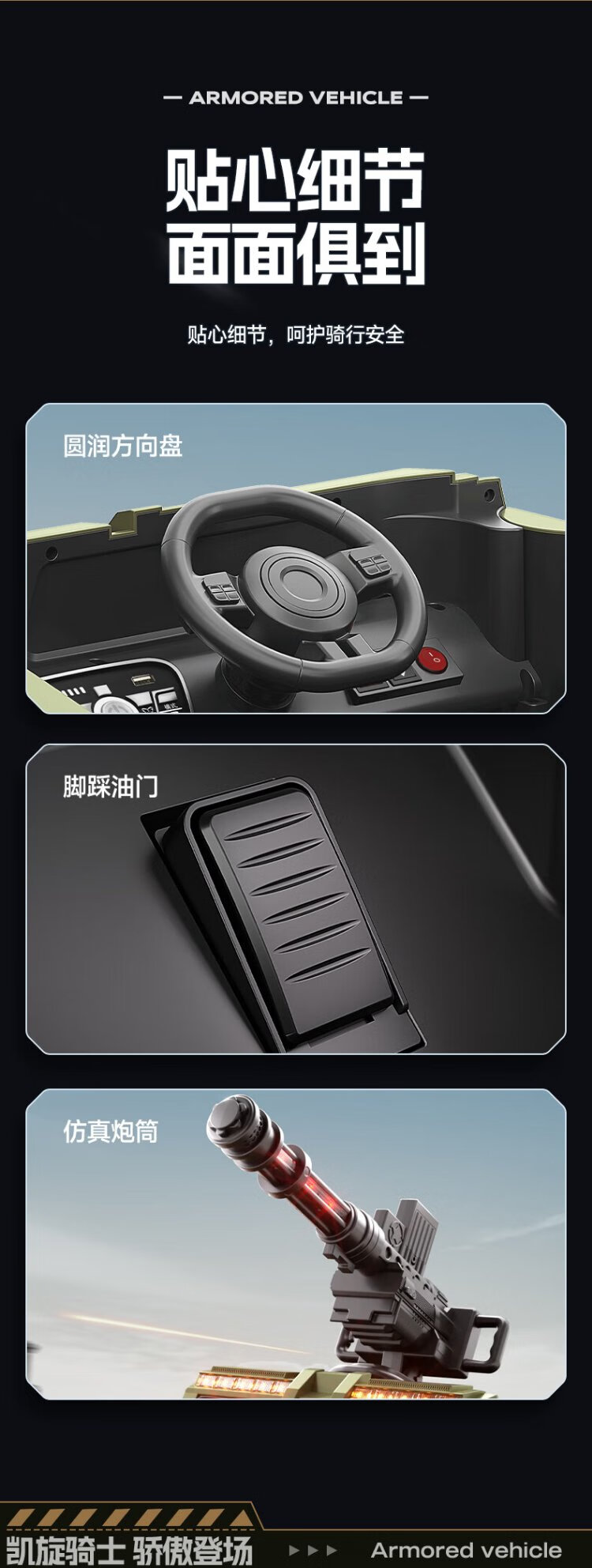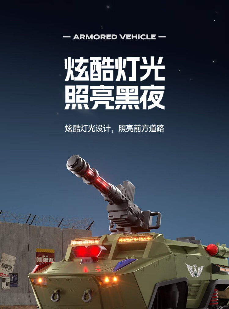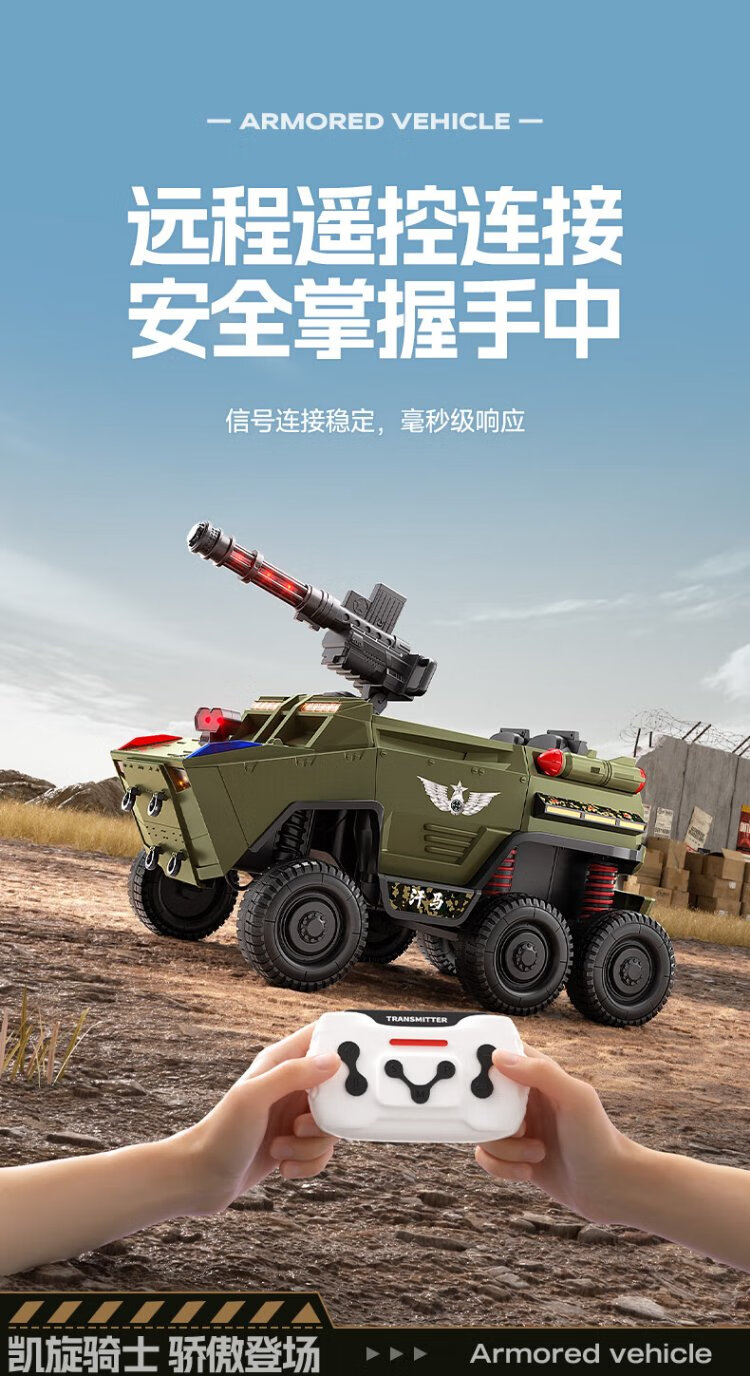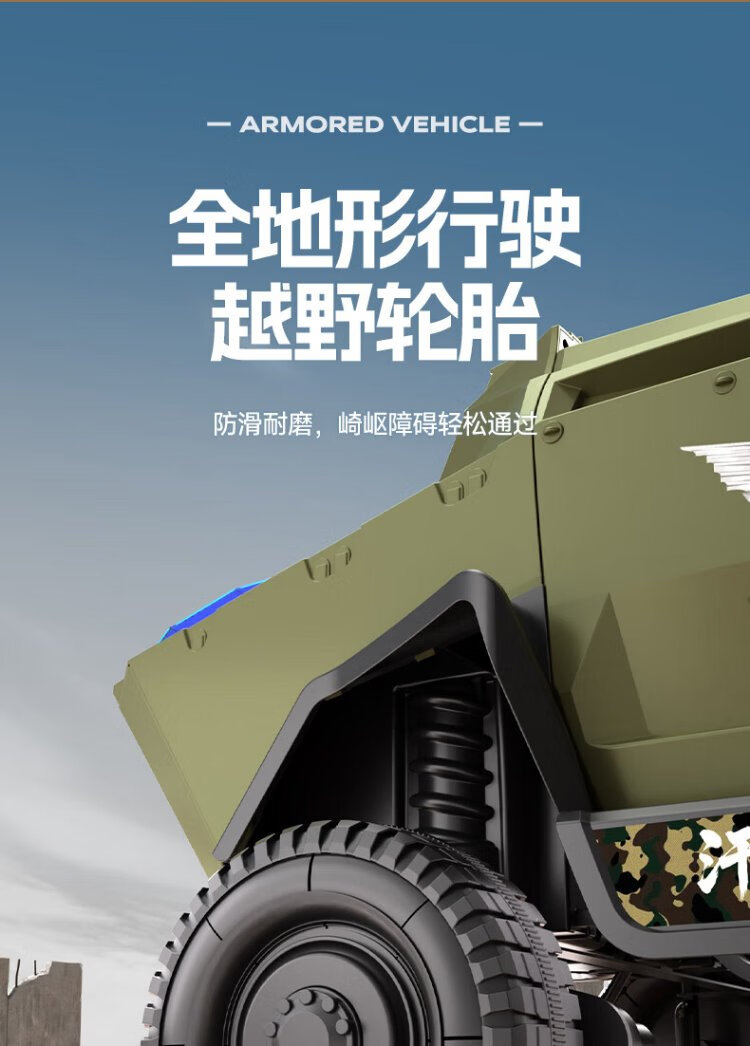 Hanma children's electric car children's electric car children's car drivable children's car armored car detachable barrel standard army green | four-wheel drive + 12V7A battery + remote control + detachable barrel