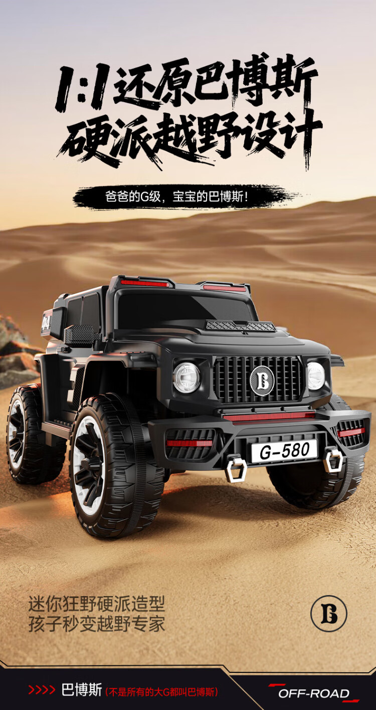 Brabus Mercedes-Benz Big G children's electric car children's electric car toy car large seatable children's car children's car cool black | four-wheel drive + 390 motor + 12V10A battery + shock absorption + leather seat + remote control + gift bag