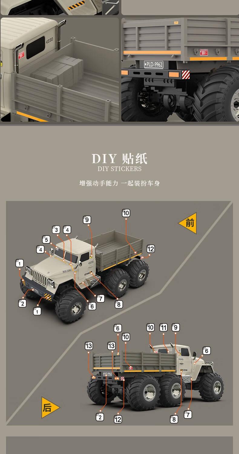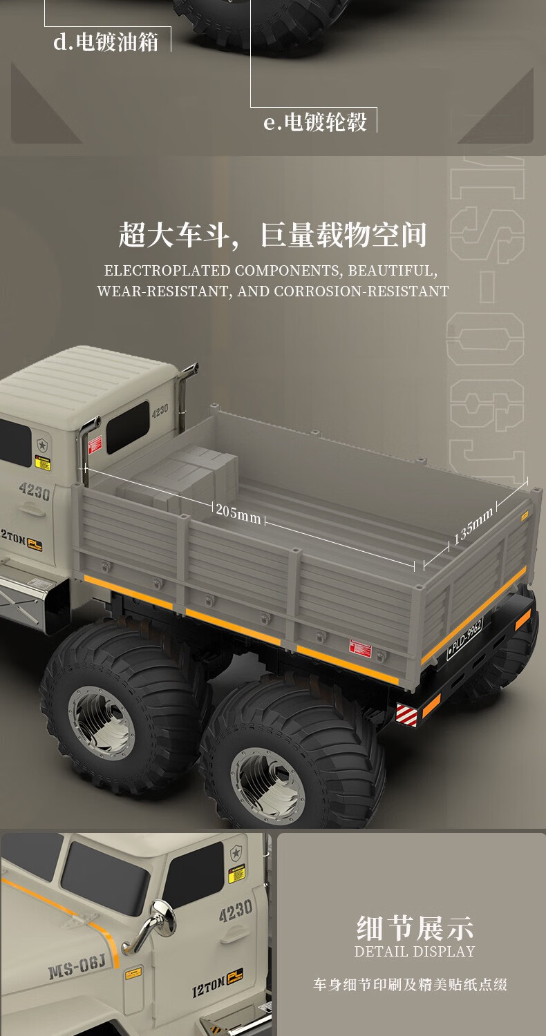 Chili 25 remote control toy cars for 6-12 years old, pickup truck, six-wheel off-road climbing, rechargeable children's electric car, gray 1 10 electric remote control pickup truck, lithium battery x1 (about 30 minutes)