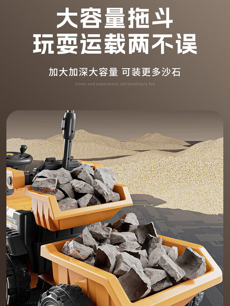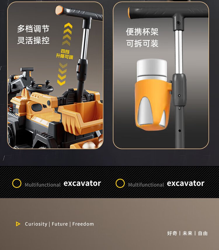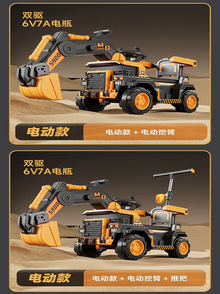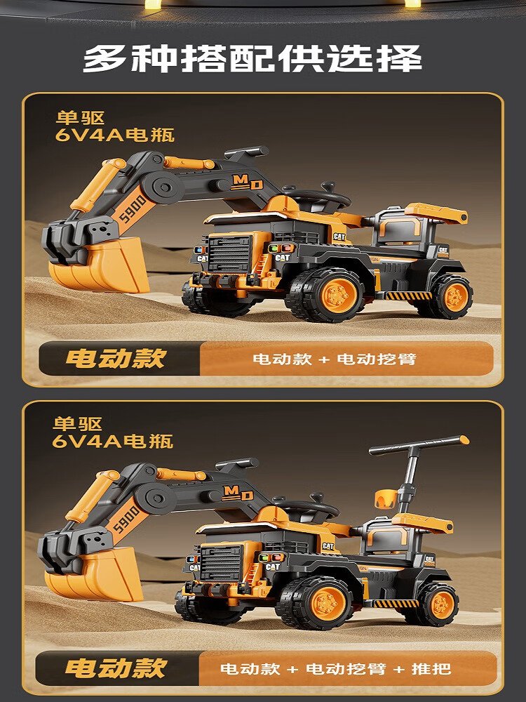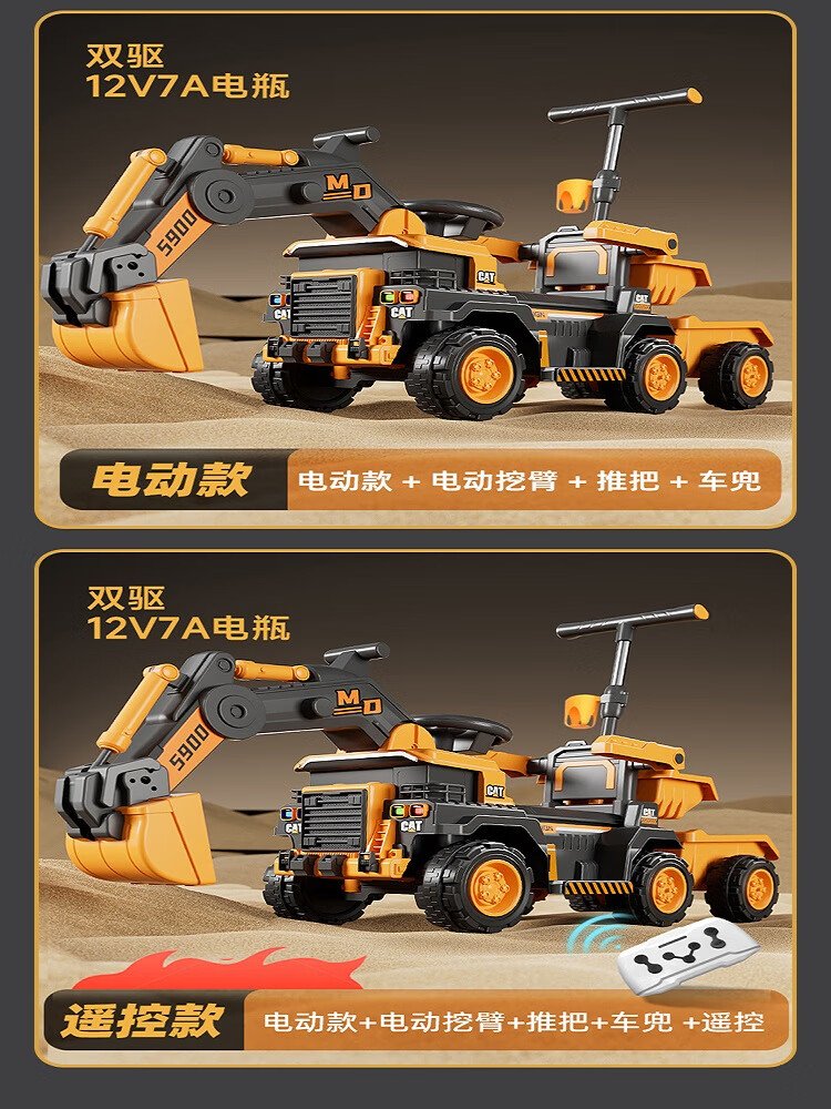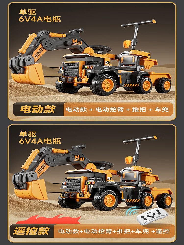 Ledi Beibei children's electric excavator can sit on children's electric car, children's car toy car, large can sit on people digging soil gift, single drive + 6V4A battery + electric digging arm + push handle + car pocket + remote control